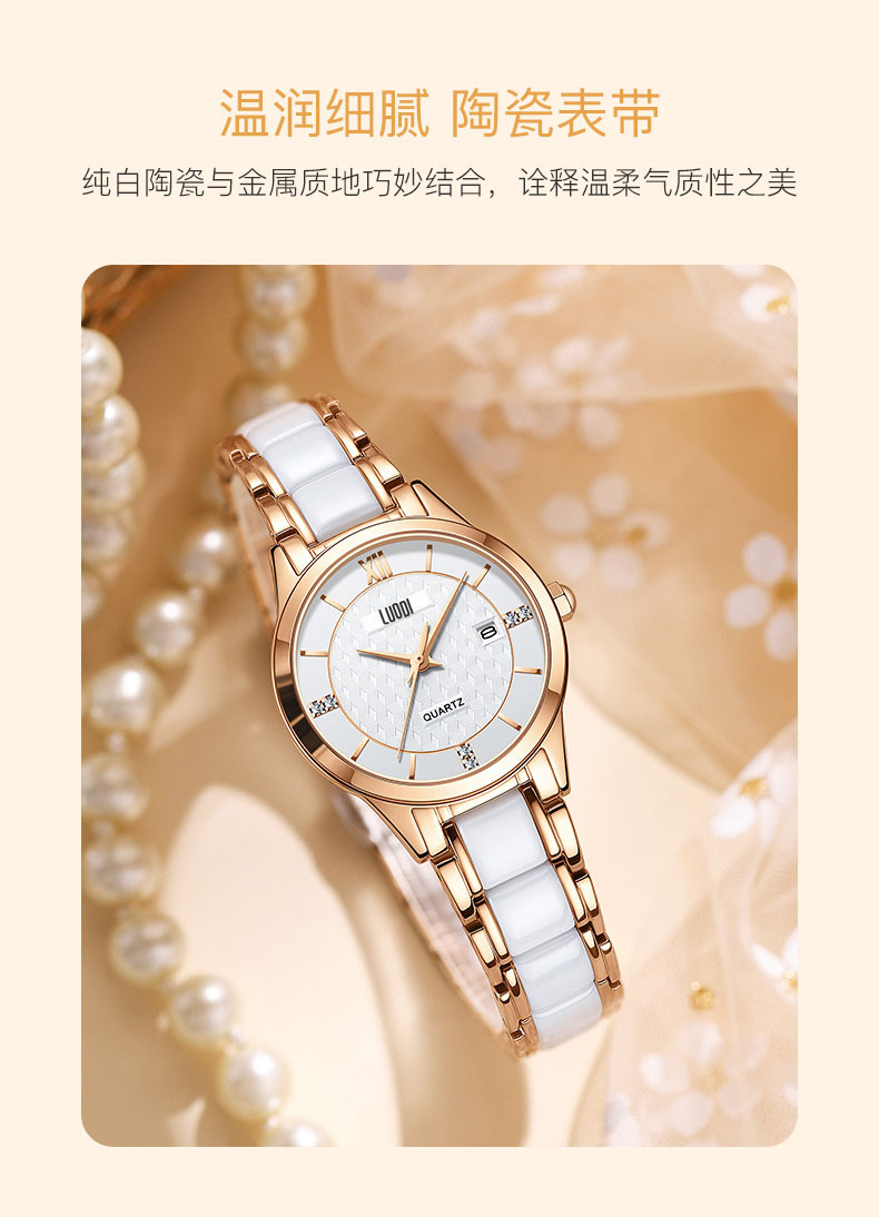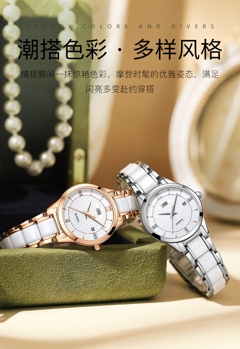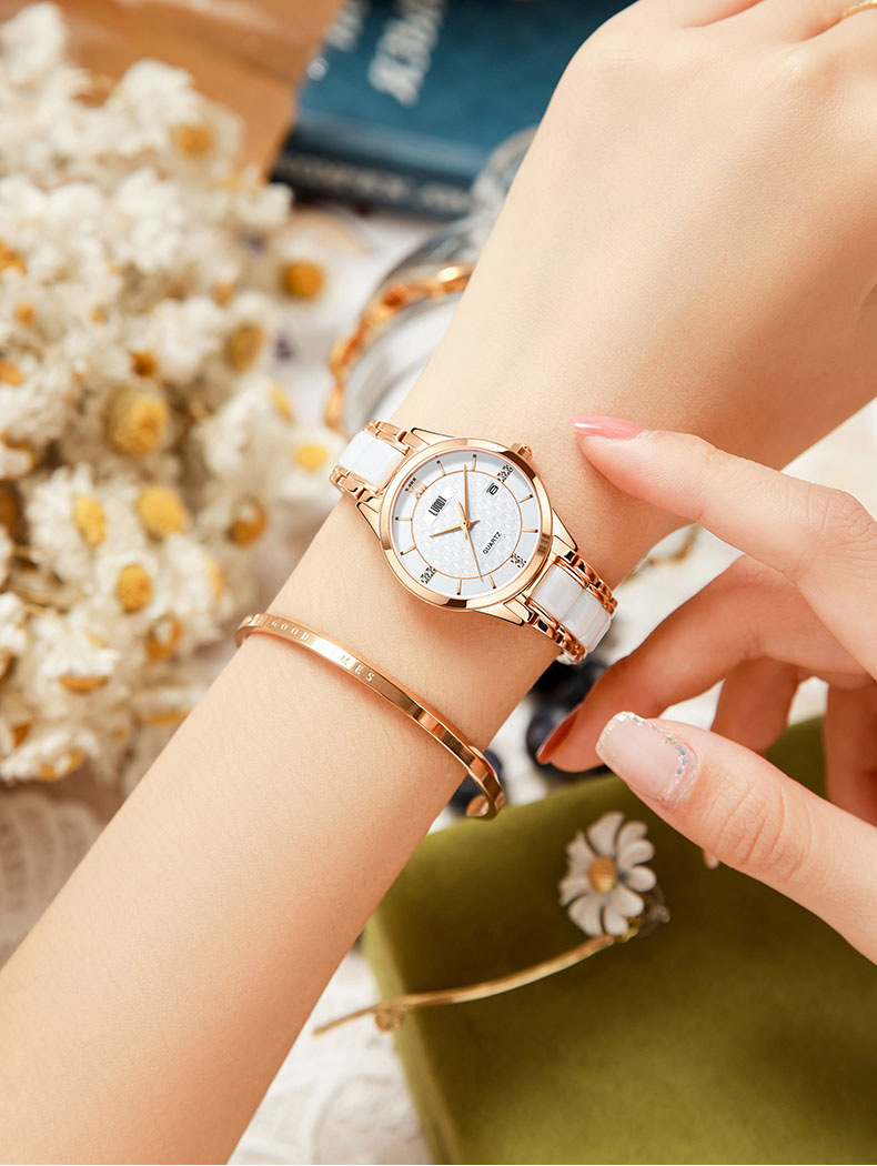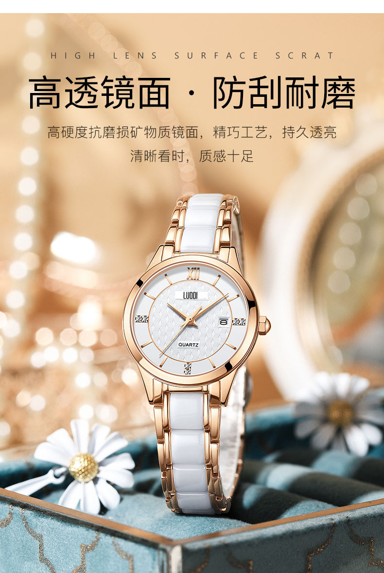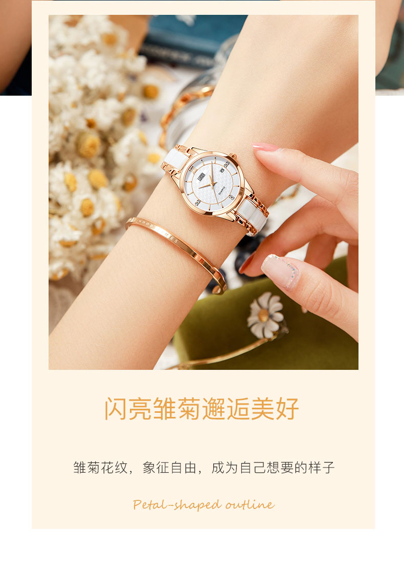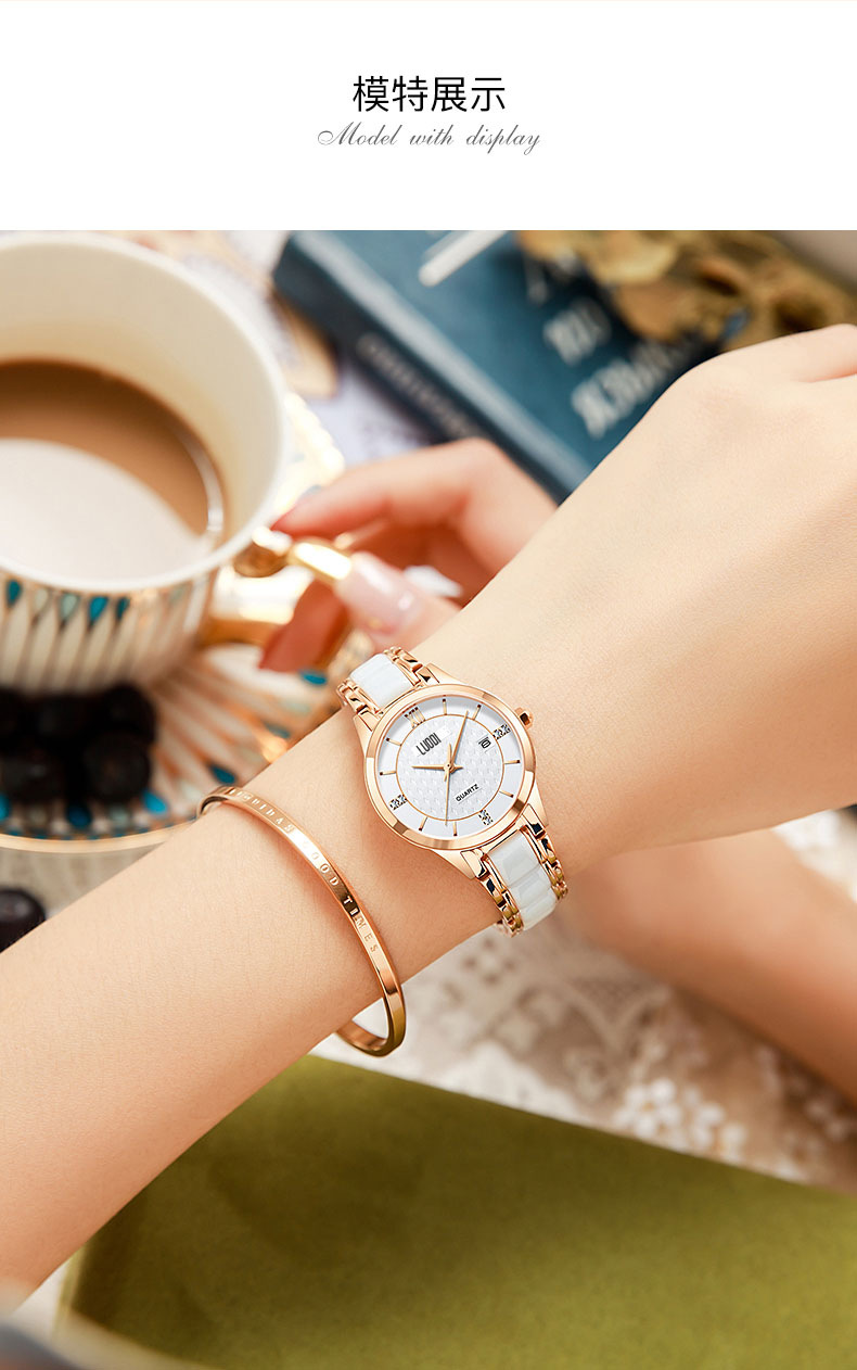 Đồng hồ đeo tay nữ thời trang chống nước dạ quang ngày sang trọng khí chất gốm siêu mỏng phiên bản Hàn Quốc phong cách nóng bỏng cho nữ