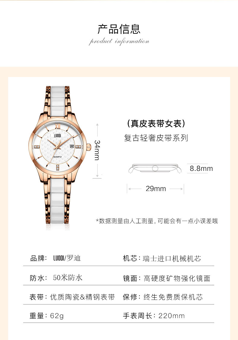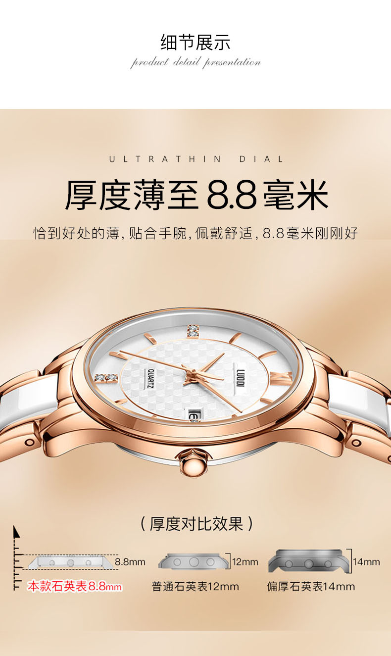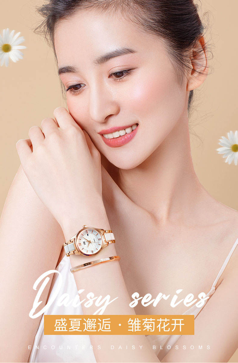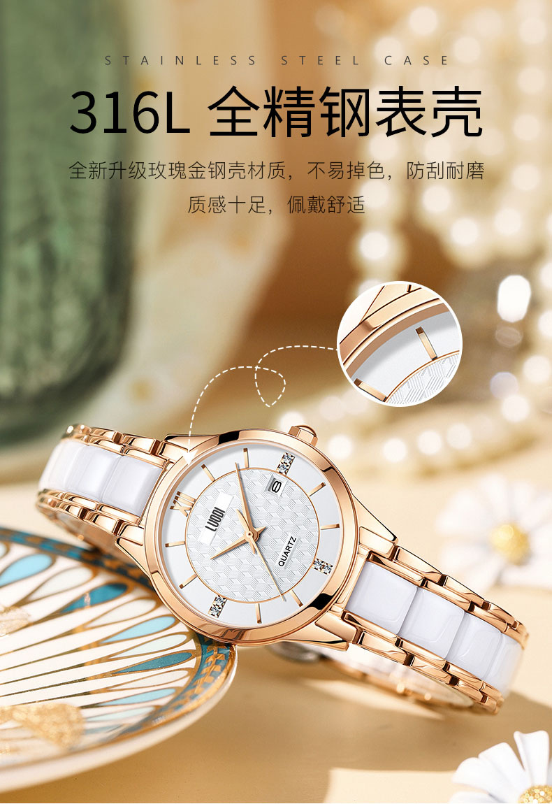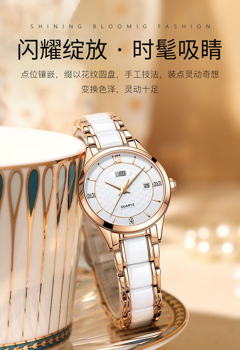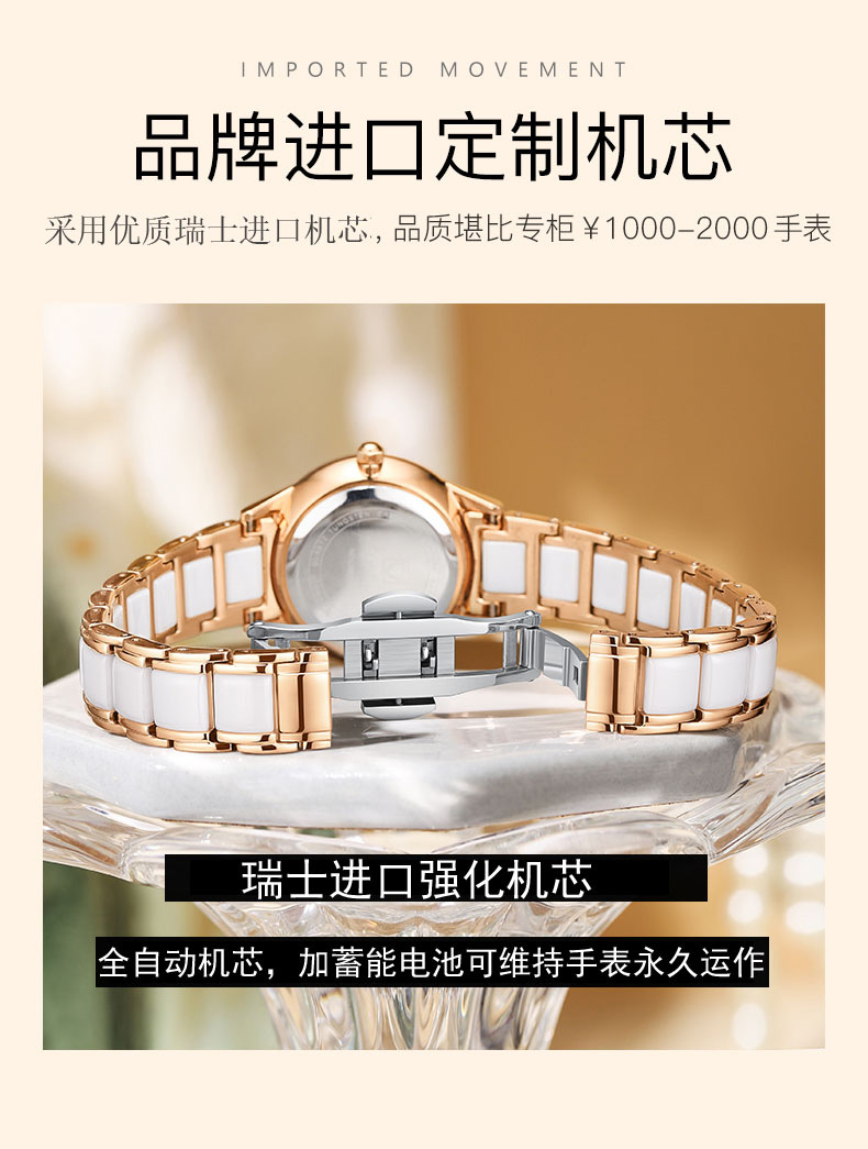 Đồng hồ đeo tay nữ thời trang chống nước dạ quang ngày sang trọng khí chất gốm siêu mỏng phiên bản Hàn Quốc phong cách nóng bỏng cho nữ