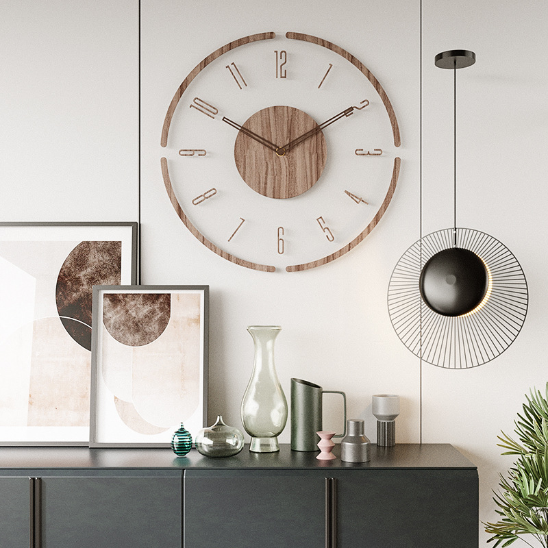 Đồng hồ đơn giản Đồng hồ treo tường Bắc Âu trang trí phòng khách thời trang tắt tiếng đồng hồ treo tường sáng tạo đồng hồ treo tường đồng hồ thạch anh gỗ nguyên khối