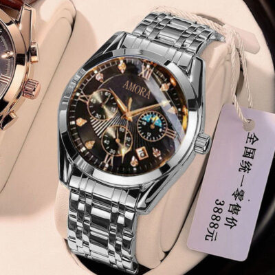 - 名称: DZ风格男士手表大表盘带日历商务休闲钢带石英手表