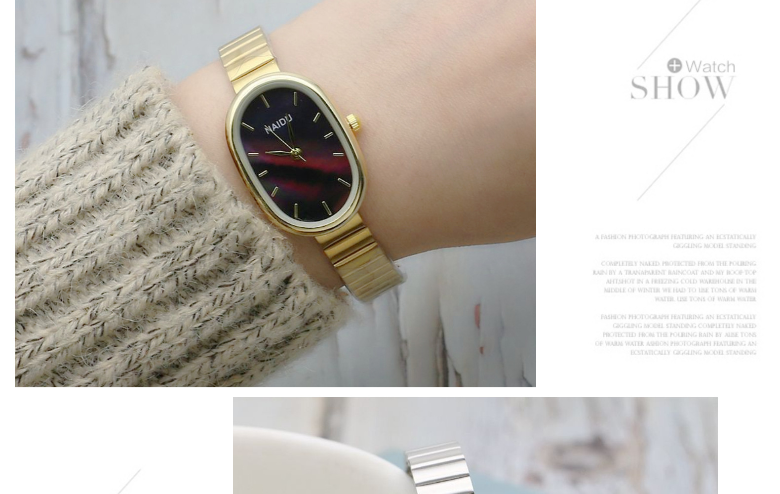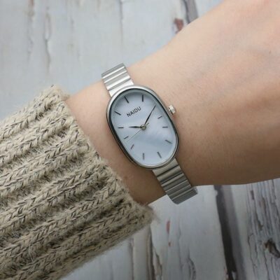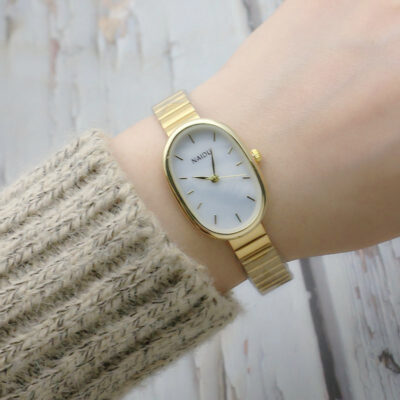 Đồng hồ elip tấm nhỏ dây tre cô gái đồng hồ sinh viên dây lưới đồng hồ vàng đồng hồ nữ Mori đồng hồ thạch anh nhỏ tươi