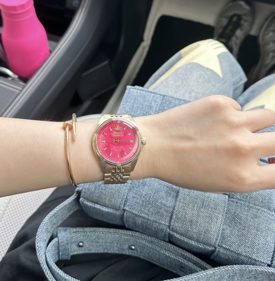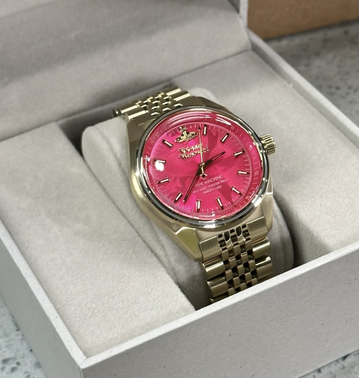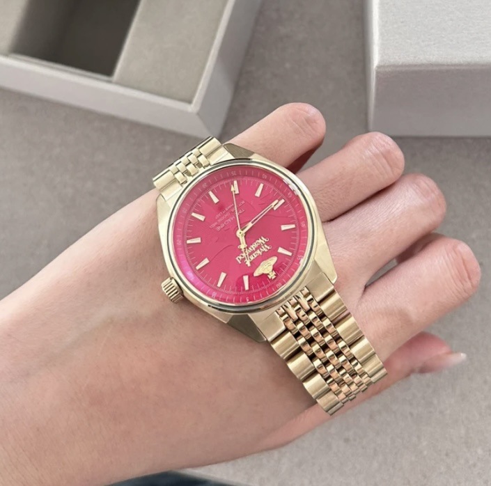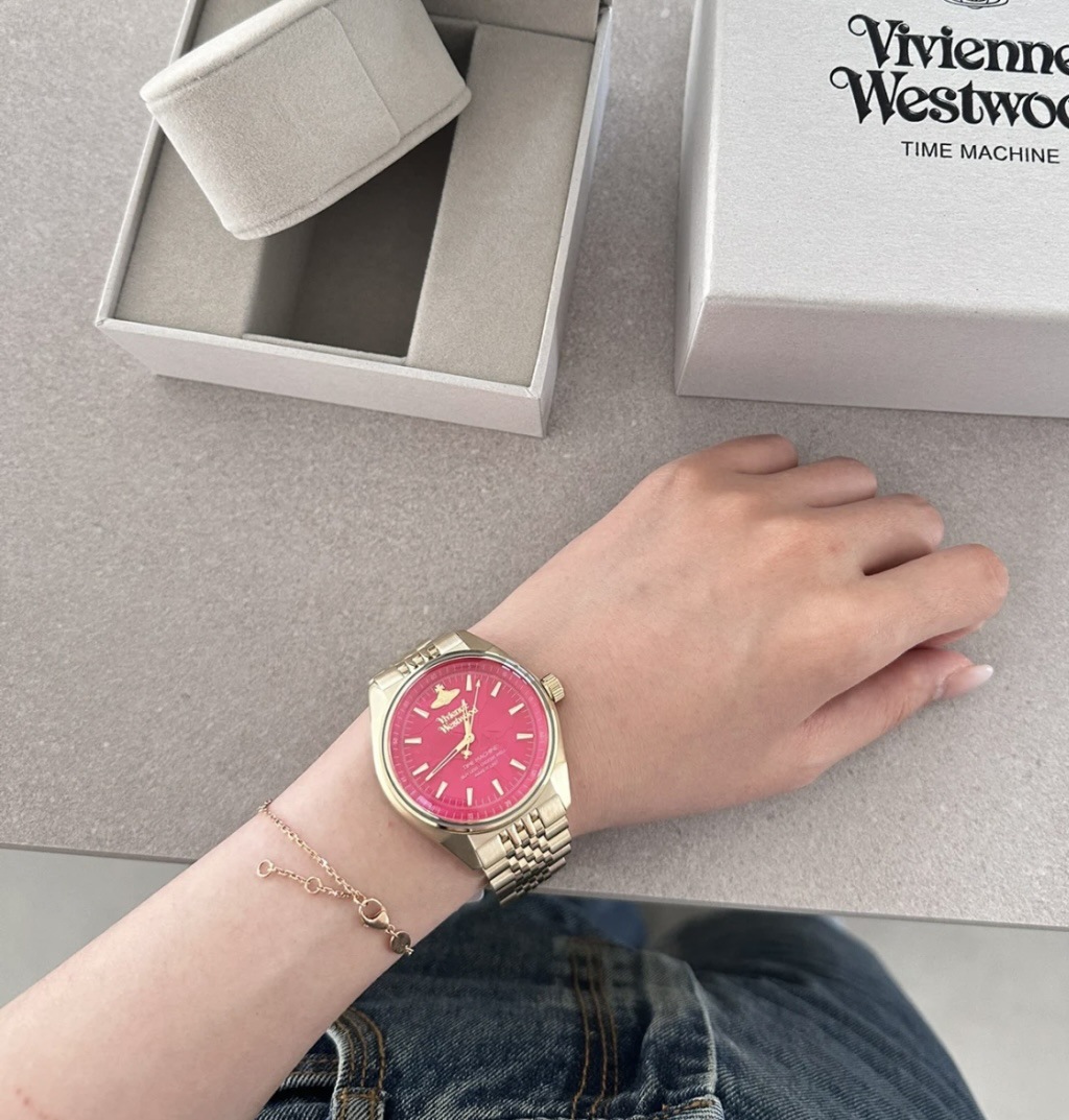 Đồng hồ màu hồng Vivienne Rose Đồng hồ đeo tay Queen Mother Rose Red Đồng hồ đeo tay bằng thép thạch anh Saturn Đồng hồ đeo tay nữ Đồng hồ vàng nhỏ Đồng hồ đeo tay màu xanh nhỏ