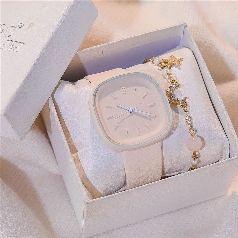 Đồng hồ màu trà sữa in mô hình nữ sinh giá trị cao mùa hè trường trung học cơ sở Sen Department thiết kế ngách nhỏ tươi mát đơn giản