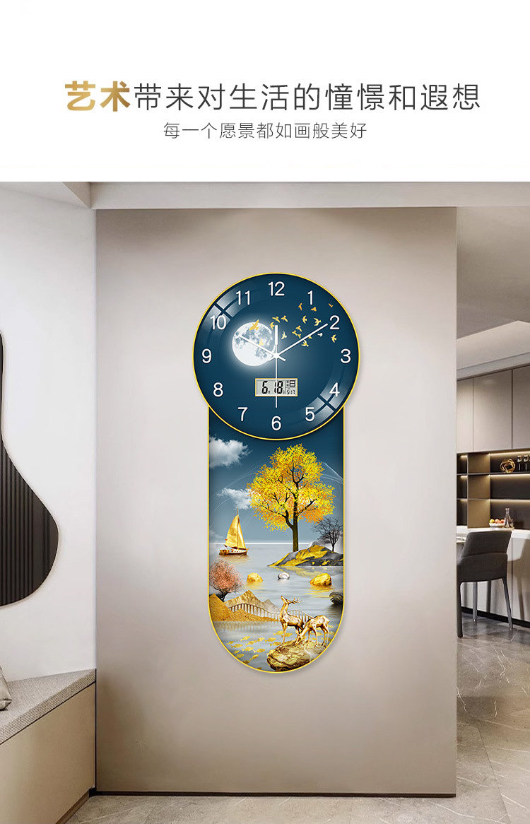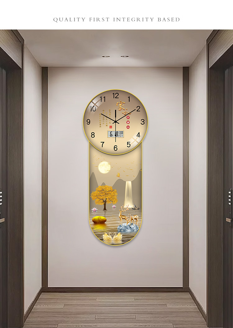 Đồng hồ mới Đồng hồ treo tường phòng khách nhà thời trang sáng tạo mới phong cách Trung Hoa ánh sáng sang trọng hiện đại tối giản Đồng hồ treo tường đồng hồ