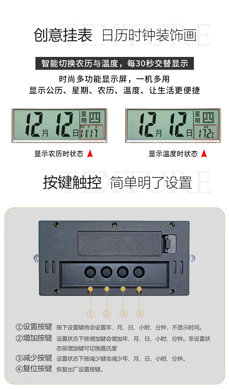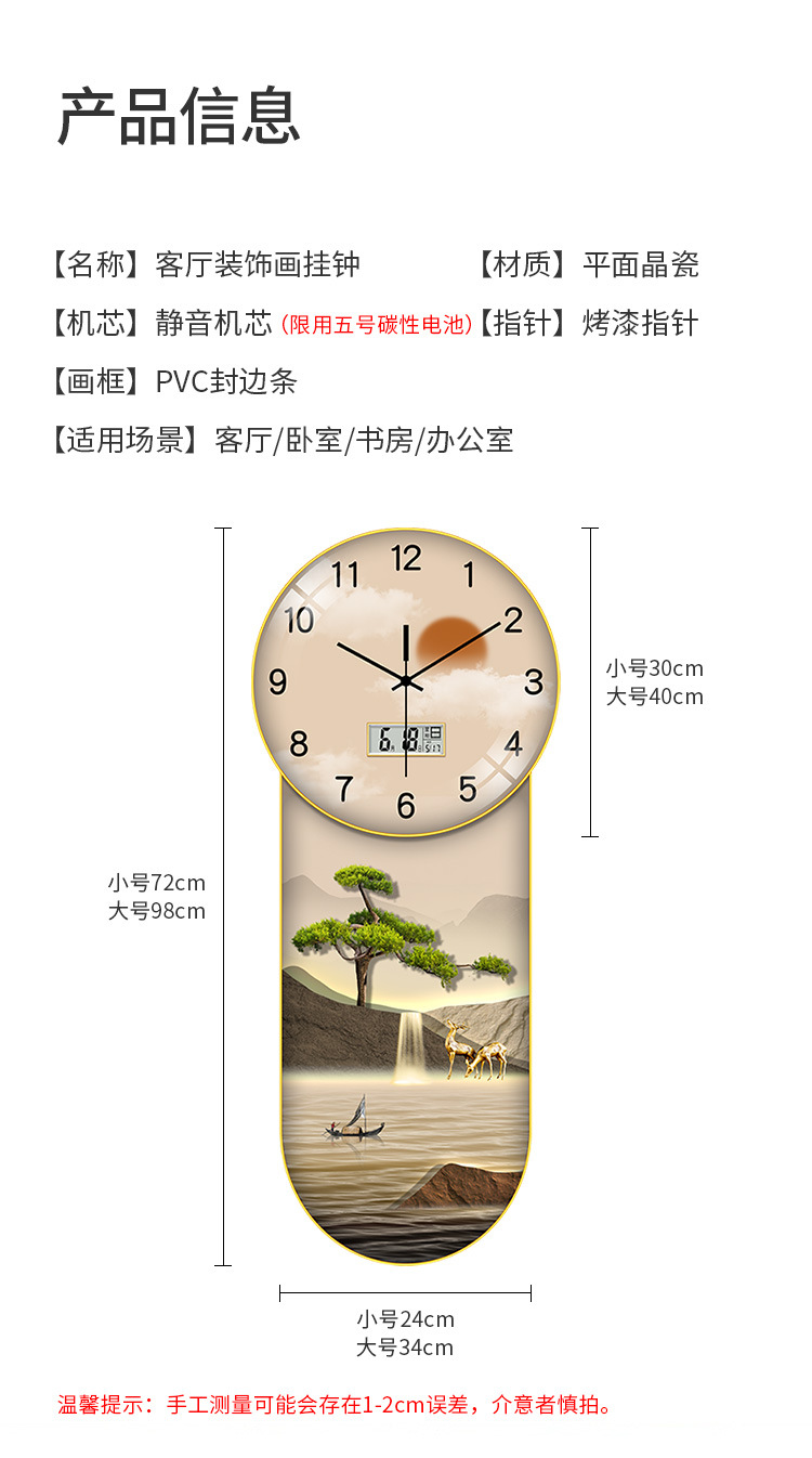Thương hiệu bộ máy: Mặt trời Hình thức chuyển động: Hình bầu dục Danh mục sản phẩm: Đồng hồ treo tường Chất liệu mặt số: Giấy nhiều lớp Màu sắc: 24*72 (vòng 30) cm/34*98 (vòng 40) cm/34*98 (vòng 40) cm Loại chuyển động: Chuyển động quét thứ hai In LOGO: Có Chất liệu vỏ: Kính Cho dù có bản quyền hay bằng sáng chế: Không Hai mặt: Một mặt Chất liệu gương: Kính thông thường Gương Nơi áp dụng: phòng khách/phòng học/văn phòng/văn phòng Kích thước: CY- 1 Thông thường loại (có nắp kính)/loại lịch CY-1-RL (có nắp kính)/loại lịch CY-2-RL (có nắp kính)/loại lịch CY-3-RL (có nắp kính)/CY- 5- Lịch RL (có nắp kính)/lịch CY-6-RL (có nắp kính)/lịch CY-8-RL (có nắp kính)/lịch CY-9-RL (có nắp kính)/ lịch CY-10-RL (có nắp kính)/Lịch CY-11-RL (có nắp kính)/Lịch CY-11-RL (có nắp kính) Không gian: phòng khách Tùy chỉnh xử lý: có Loại nguồn: kiểu pin: Hiện đại Loại màn hình: Con trỏ + Kỹ thuật số Nguồn gốc phong trào: Trung Quốc