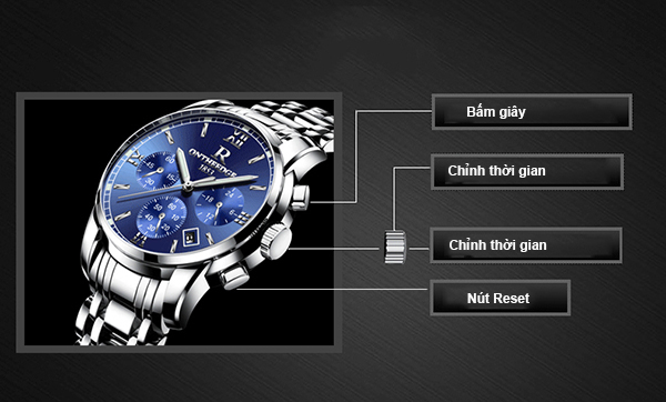 Bộ Đồng hồ nam dây thép không gỉ R-Ontheedge 6 kim quay