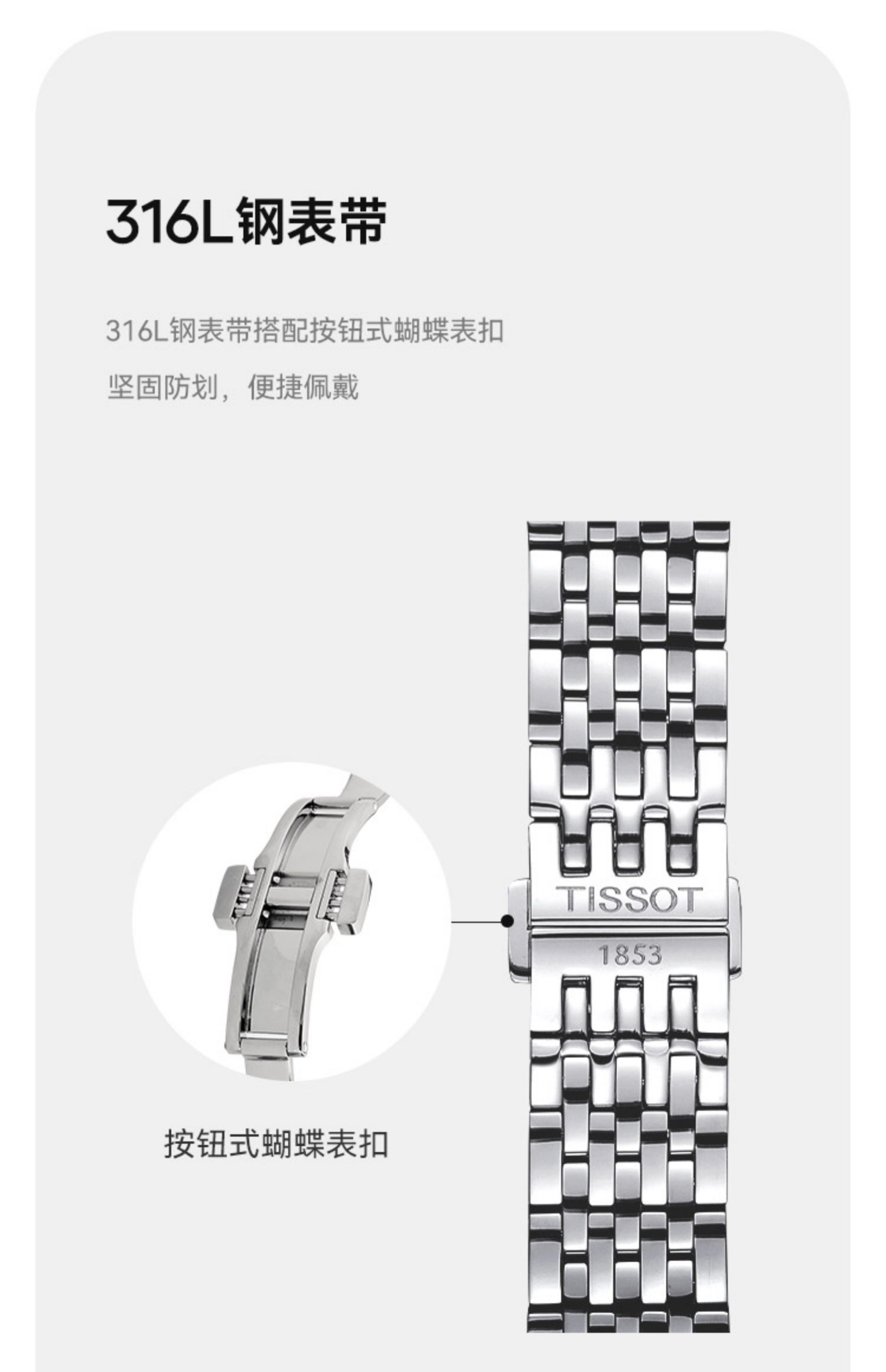 Đồng hồ nam Tissot Thụy Sỹ Đồng hồ cơ thời trang Đồng hồ nam dây thép Đồng hồ chính hãng Lelock Classic
