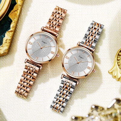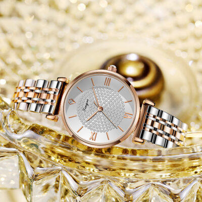 Đồng hồ nổi tiếng TINGXI đồng hồ rung trực tiếp đồng hồ nữ đầy sao đồng hồ đeo tay nữ nạm kim cương dây thép không gỉ đồng hồ thạch anh đồng hồ chống thấm nước