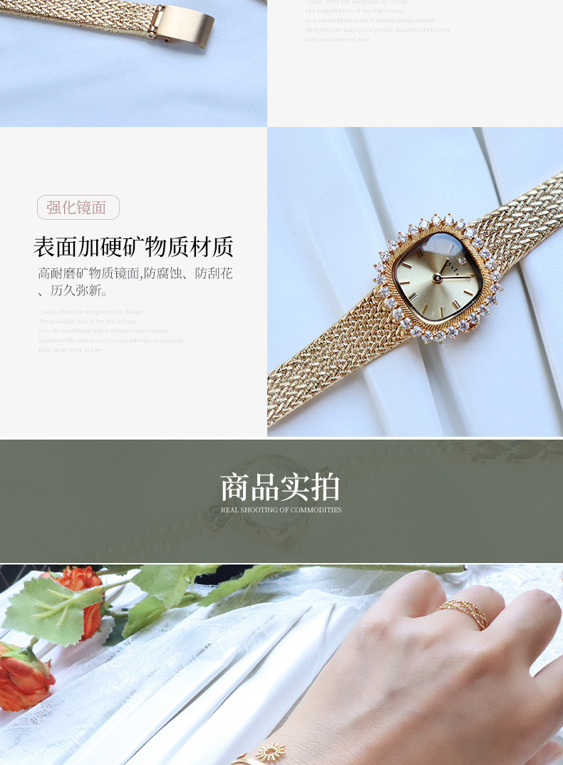 Đồng hồ nữ agete ánh sáng retro sang trọng mặt đồng hồ nhỏ cổ điển tinh tế đồng hồ thạch anh đơn giản thích hợp