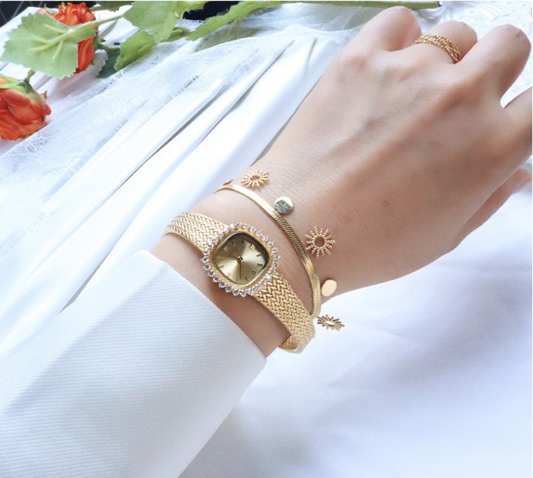 Đồng hồ nữ agete ánh sáng retro sang trọng mặt đồng hồ nhỏ cổ điển tinh tế đồng hồ thạch anh đơn giản thích hợp