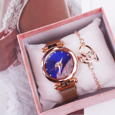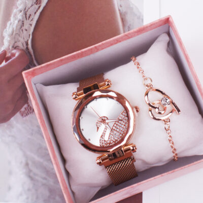 đồng hồ nữ bộ đồng hồ hai mảnh đồng hồ nữ thoát nước vi kinh doanh nam châm đá hút sắt bộ đồng hồ