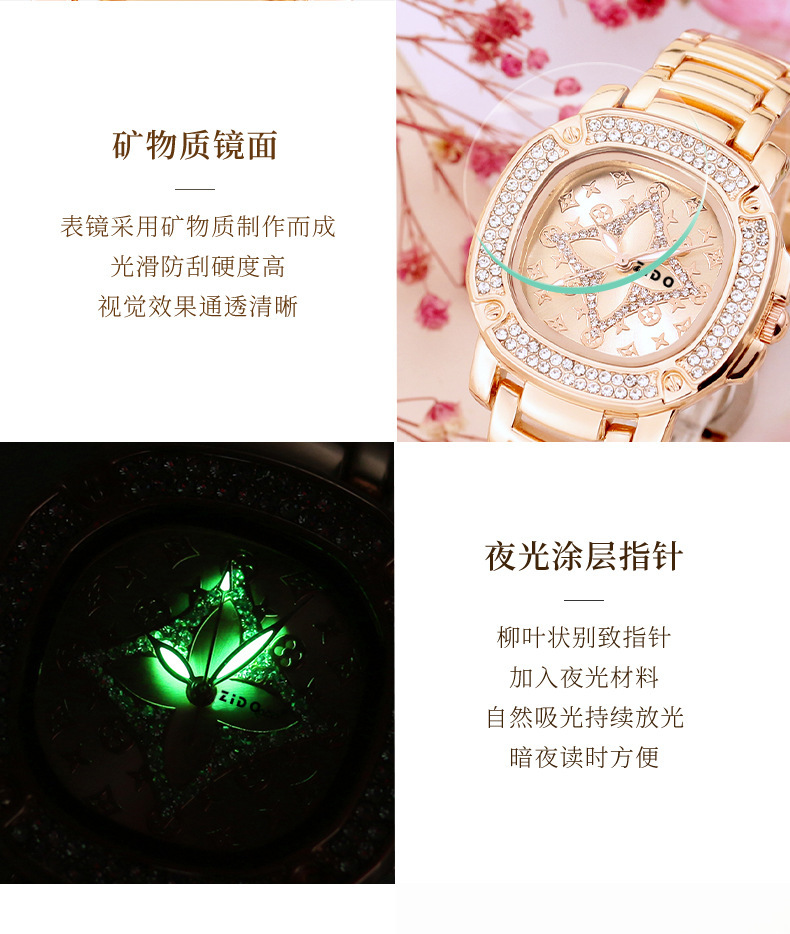 Đồng hồ nữ cỏ bốn lá thương hiệu Zido cao cấp đơn giản khí chất thời trang đa năng ánh sáng sang trọng đồng hồ thạch anh nữ chống thấm nước
