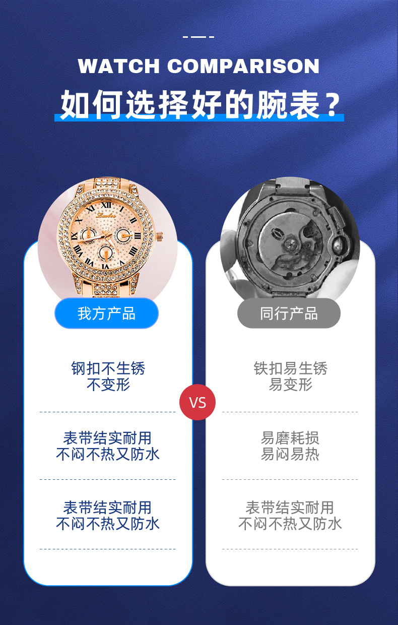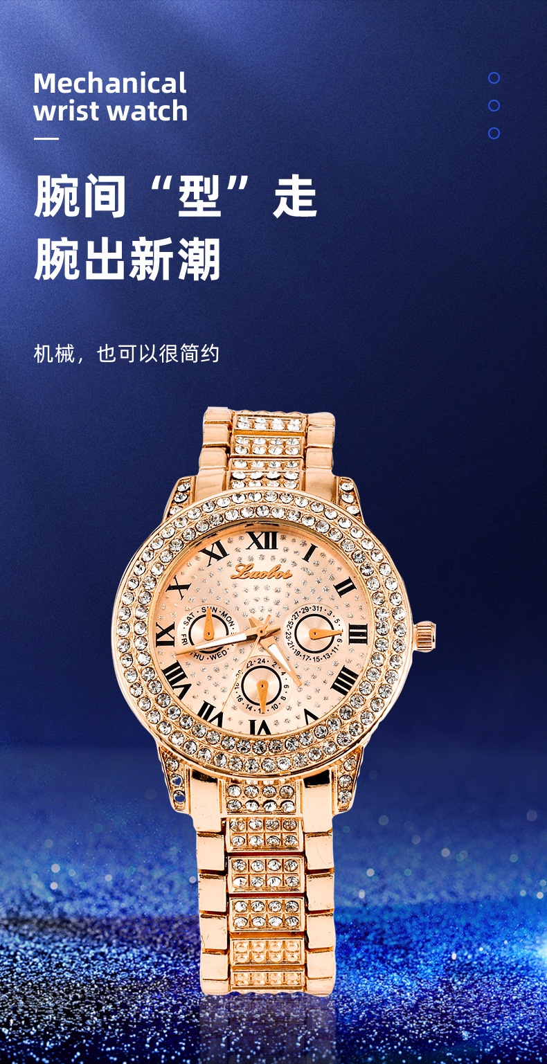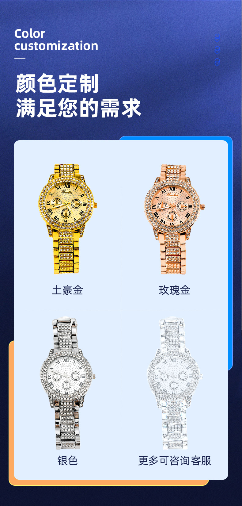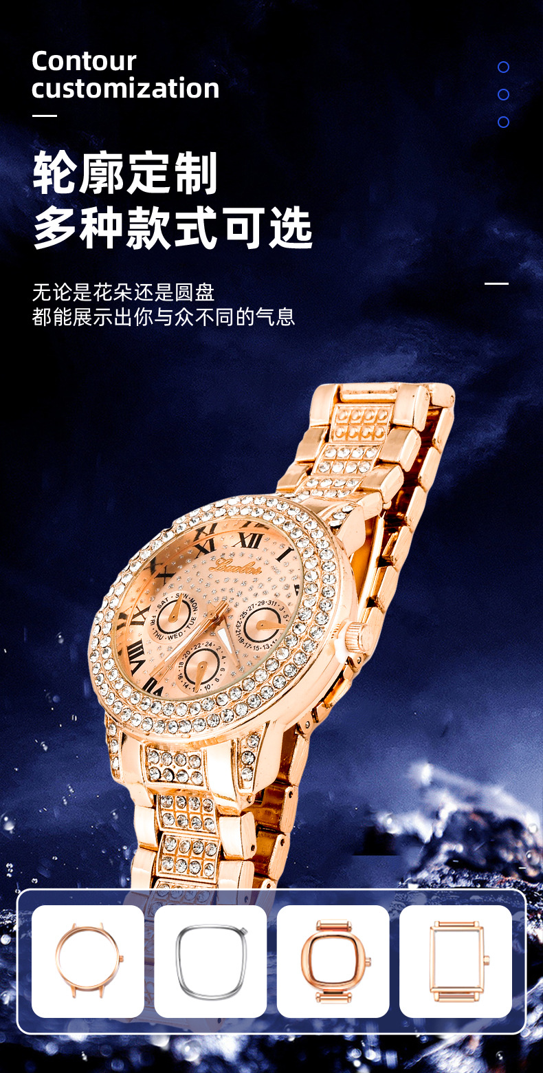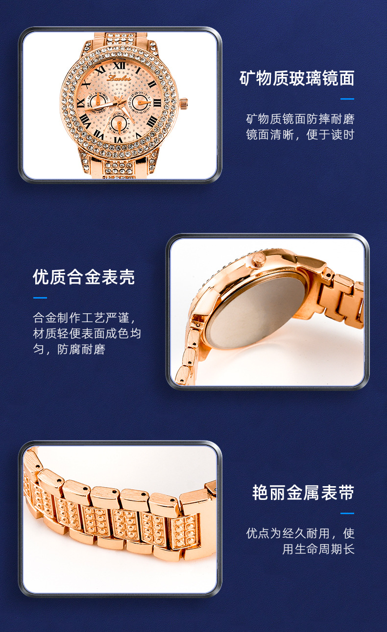 Đồng hồ nữ đồng hồ thạch anh xuyên biên giới xu hướng vàng hồng đồng hồ thời trang rhinestone xu hướng đồng hồ đeo tay kim cương