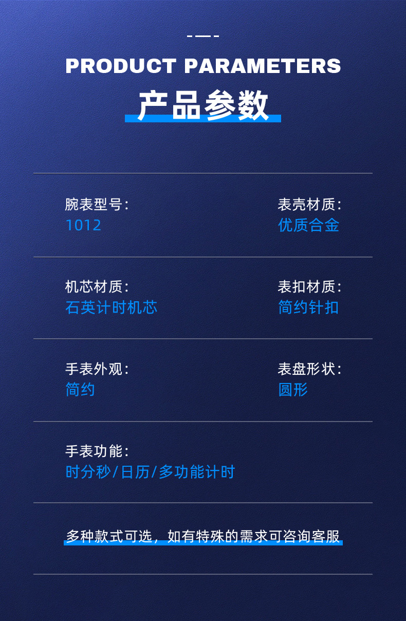 Thương hiệu chuyển động: / Cho dù Nguồn bằng sáng chế: Không Mẫu: 1012 Độ dày: / Chức năng đặc biệt: Kiểu khóa trang trí: / Đường kính mặt số: / Hình dạng mặt số: Tròn Chống nước: Có Hiệu suất chống thấm nước: Khác Chất liệu khóa: Thép không gỉ Dịch vụ hậu mãi: / Đóng gói đặc điểm kỹ thuật: / Xuất xứ (trong nước): Tỉnh Quảng Đông Gia công và tùy chỉnh: Có hay không? Chung Loại đáy: Thông thường Loại vương miện: / In LOGO: Có Chất liệu gương: / Năm/mùa ra mắt: Mùa xuân 2023 Loại màn hình: Kỹ thuật số Phong cách: Kinh doanh Có nhập khẩu hay không: Không Xuất xứ bộ máy: / Chất liệu vỏ: /