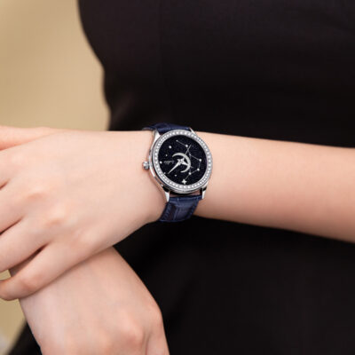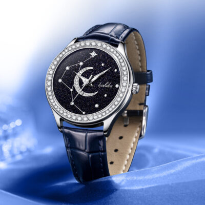 Đồng hồ nữ Douyin Explosive Blue Star Thời trang Đồng hồ thạch anh dạ quang nạm kim cương Đồng hồ đeo tay nữ bằng da thật không thấm nước Bán buôn