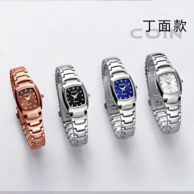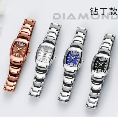 Đồng hồ nữ mặt vuông màu thép vonfram thời trang chống nước đính kim cương hàng hiệu nữ đồng hồ học sinh không lịch không cơ khí