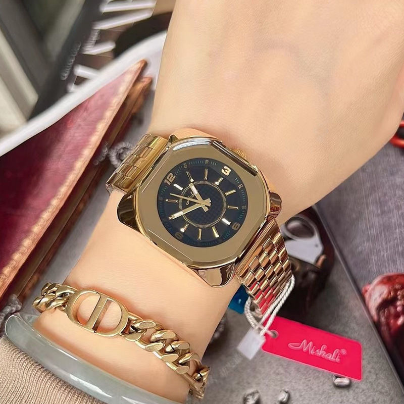 Đồng Hồ Nữ Mishali/Mirissa Douyin Explosion Quartz Thời Trang Mới Mặt Lớn Cá Tính Dây Thép Vuông