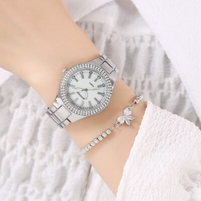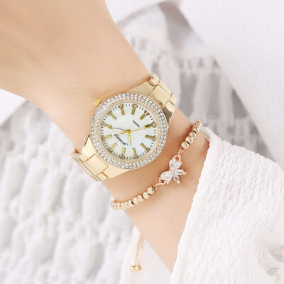 Đồng hồ nữ mới nữ sinh phiên bản Hàn Quốc xu hướng đầy kim cương khảm kim cương đồng hồ nữ thạch anh chống thấm nước dây thép vàng đồng hồ nữ
