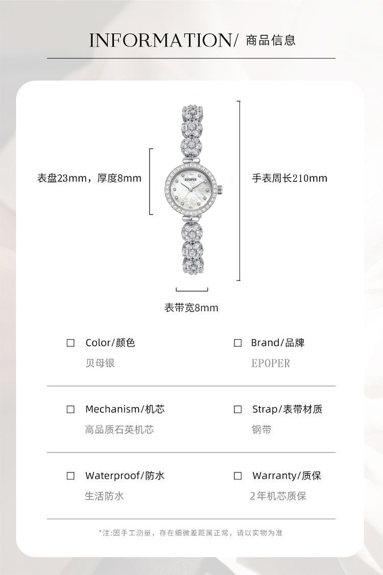 Đồng hồ nữ nàng tiên cá mặt nhỏ xà cừ tự nhiên đồng hồ niche đồng hồ nữ chống nước cao cấp nạm kim cương