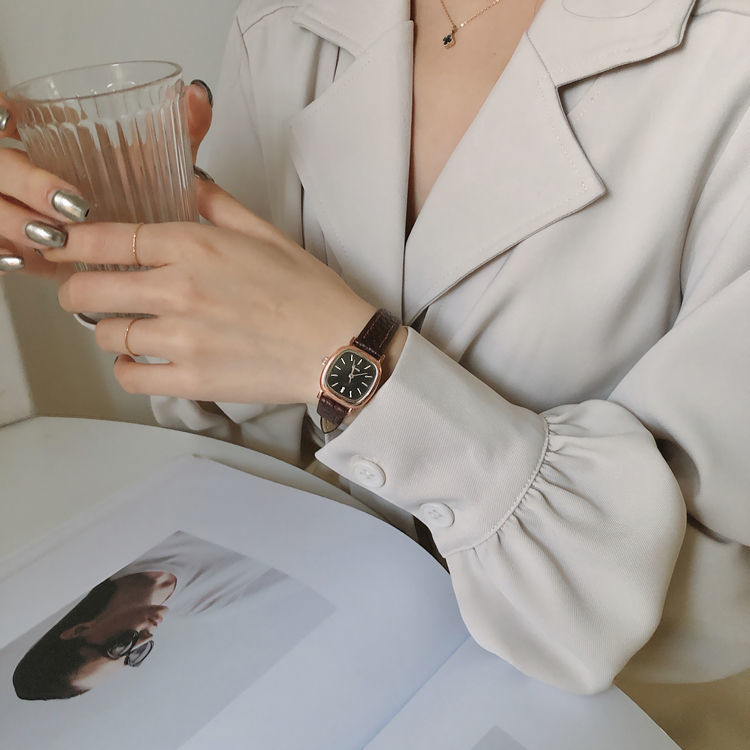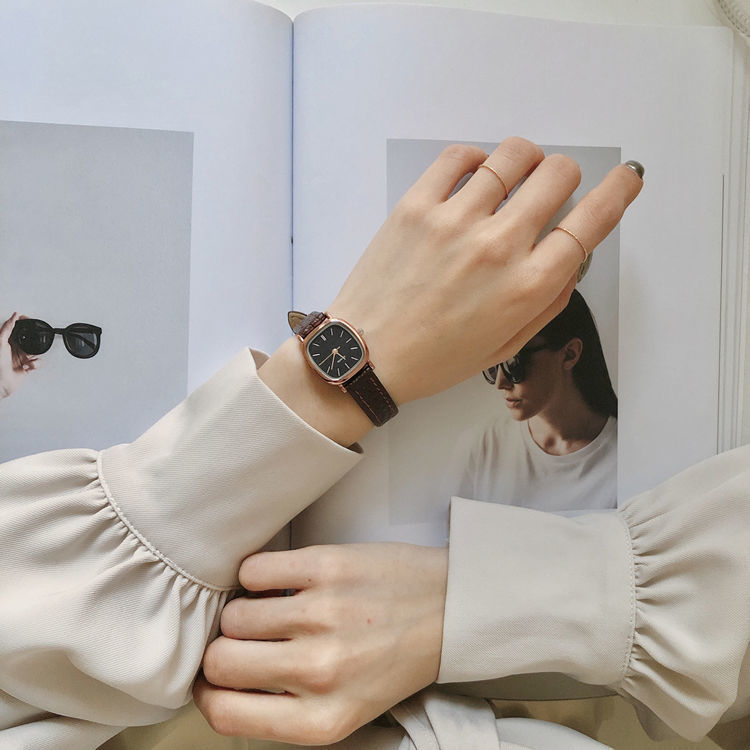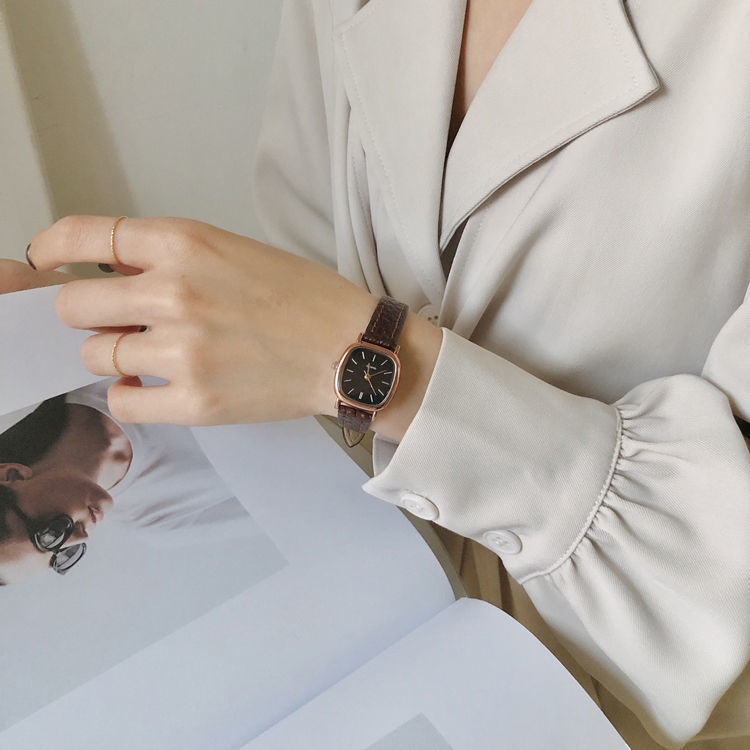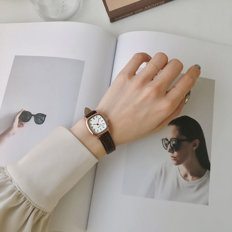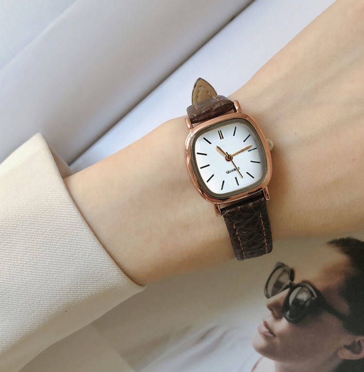 Đồng hồ nữ nữ học sinh hình vuông nhỏ và đơn giản lưới màu đỏ phong cách thời trang đồng hồ dây Pháp thích hợp bán buôn