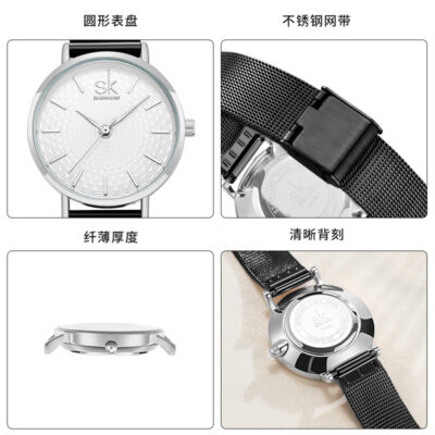 Đồng hồ nữ SK đồng hồ nữ thời trang đơn giản cao cấp mặt nhỏ xanh dây lưới đồng hồ thạch anh xuyên biên giới đồng hồ sỉ 0006