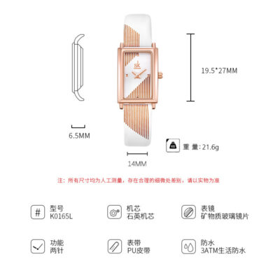 Đồng Hồ Nữ SK Thời Trang Nữ Sọc Niche Mặt Vuông Cao Cấp Chống Thấm Nước Thâm Quyến Đồng Hồ Live Explosion Xuyên Biên Giới 0165