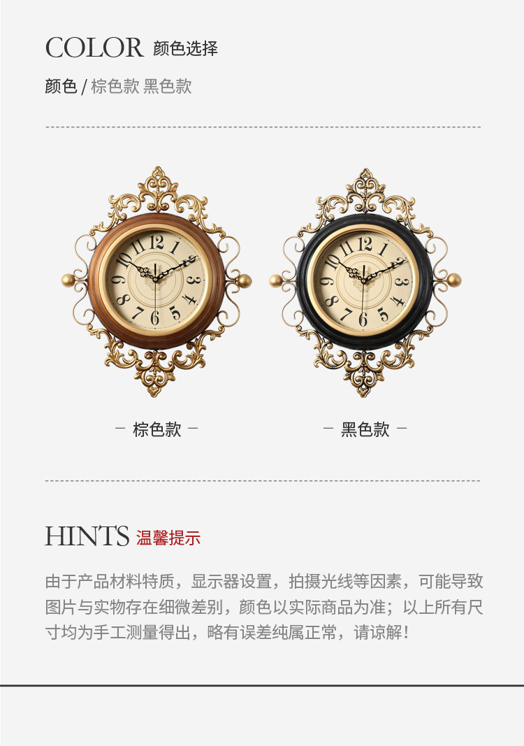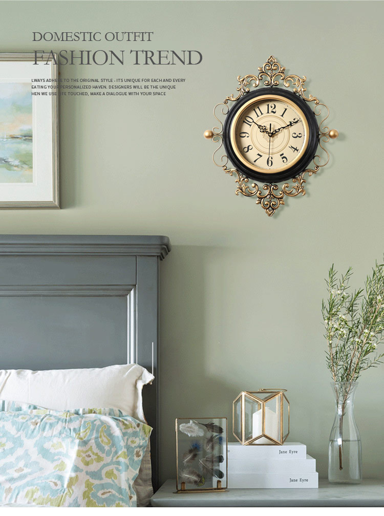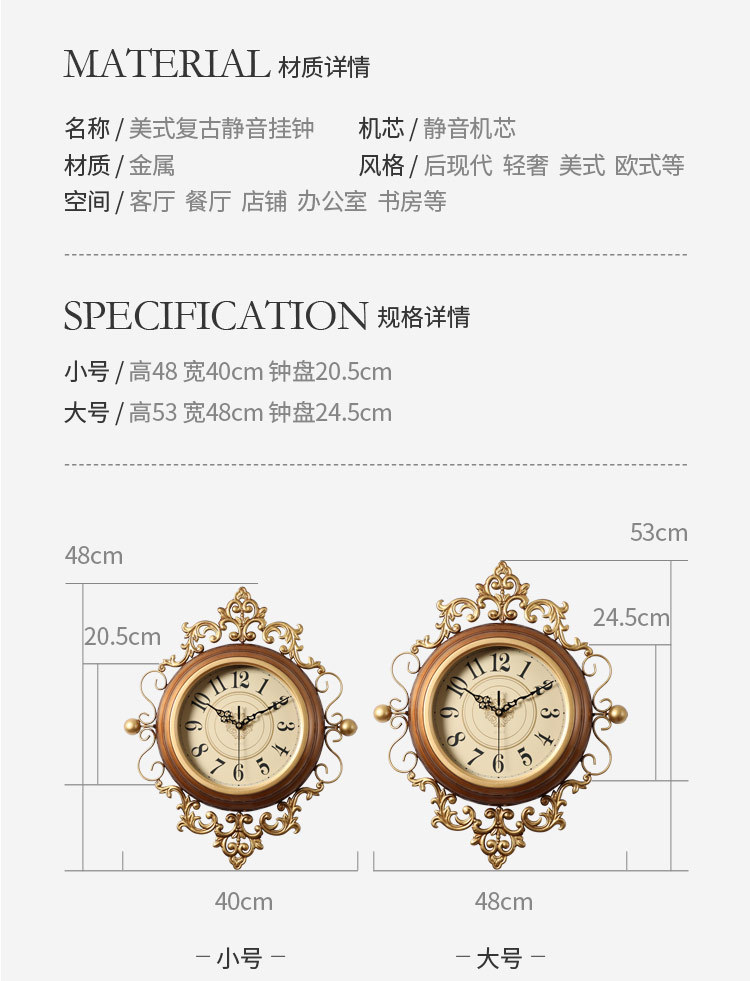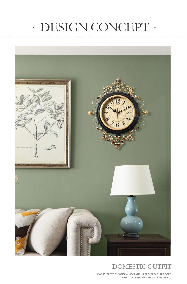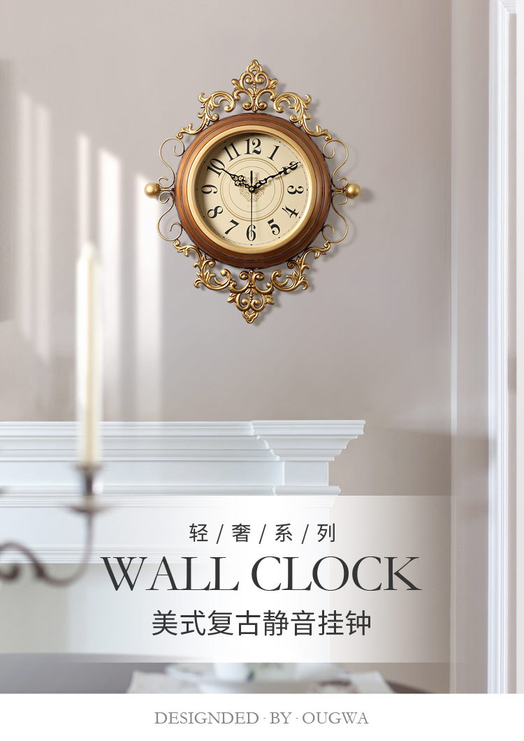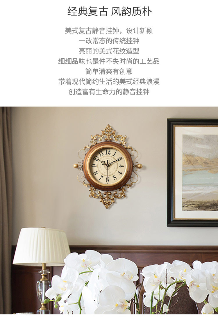 Đồng hồ phòng khách kiểu Mỹ sáng tạo Đồng hồ treo tường phong cách châu Âu nghệ thuật cổ điển Đồng hồ treo tường trang trí Đồng hồ treo tường tại nhà đồng hồ thời trang câm
