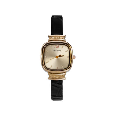 Đồng hồ retro nữ ins phong cách Pháp ánh sáng sang trọng thiết kế hốc nhỏ màu nâu mặt vuông thời trang nữ màu vàng cà phê
