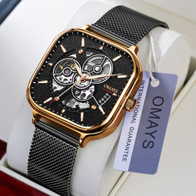 Đồng hồ thời gian châu Âu và châu Mỹ đồng hồ cơ tự động đồng hồ nam mặt vuông rỗng cá tính xu hướng đồng hồ nam trực tiếp hot trend