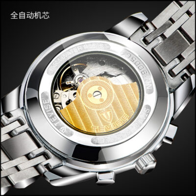 【产品】—采用的是特威斯品牌原装机全自动械机芯,走时精准,精钢表带 皮带,表壳直径43.5MM 厚度15.5MM 重量148G。