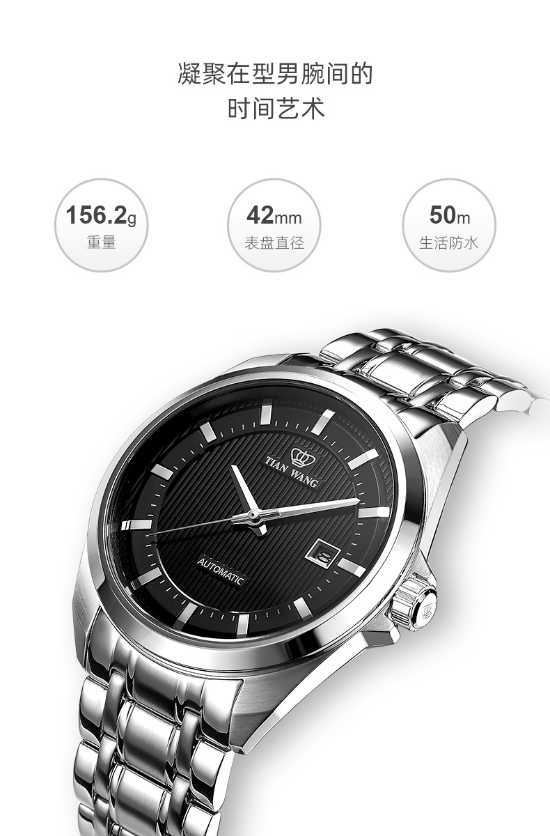 Đồng hồ Tianwang Đồng hồ nam Cơ khí tự động Kinh doanh Đồng hồ thép hiệu quả Chi phí Đồng hồ đeo tay nam Thương hiệu Trung Quốc Không thấm nước 5825.