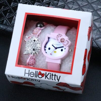 Đồng hồ trẻ em mèo kt dễ thương bán buôn sinh viên ngoại thương đồng hồ hoạt hình bé gái bộ vòng đeo tay đồng hồ thạch anh thay mặt cho