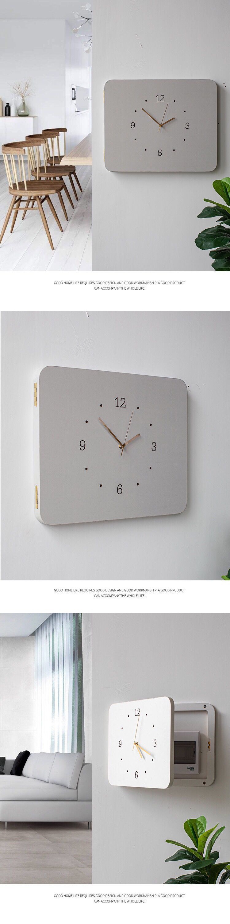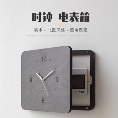 Đồng hồ treo tường đồng hồ phòng khách căn hộ nhỏ đồng hồ điện hộp trang trí tranh có nắp hộp lỗ đồng hồ đơn giản bán buôn