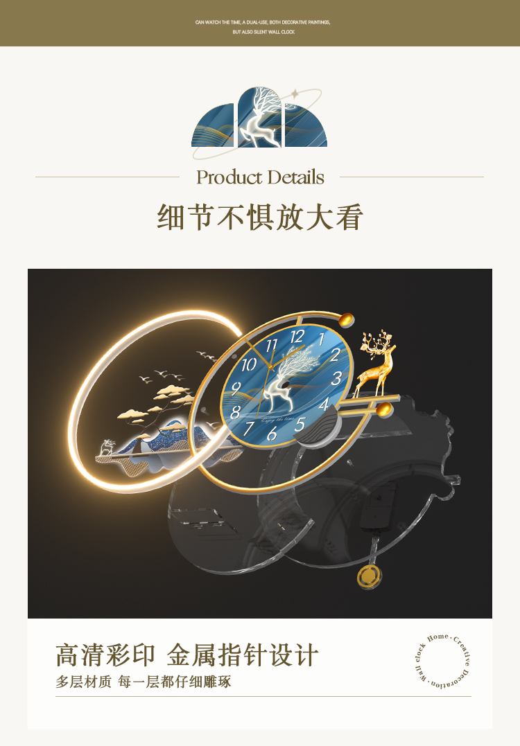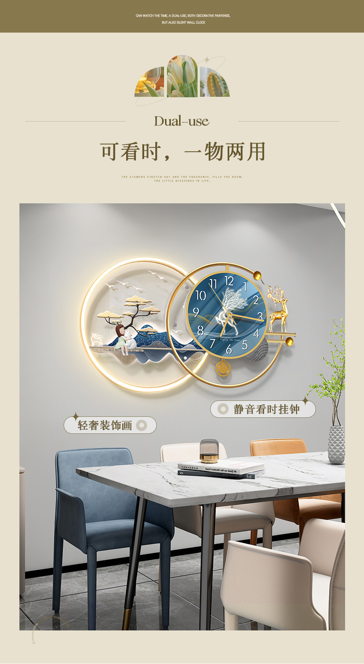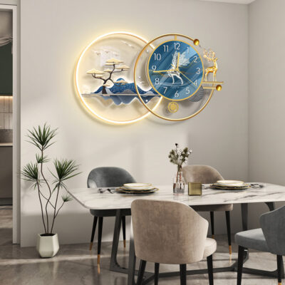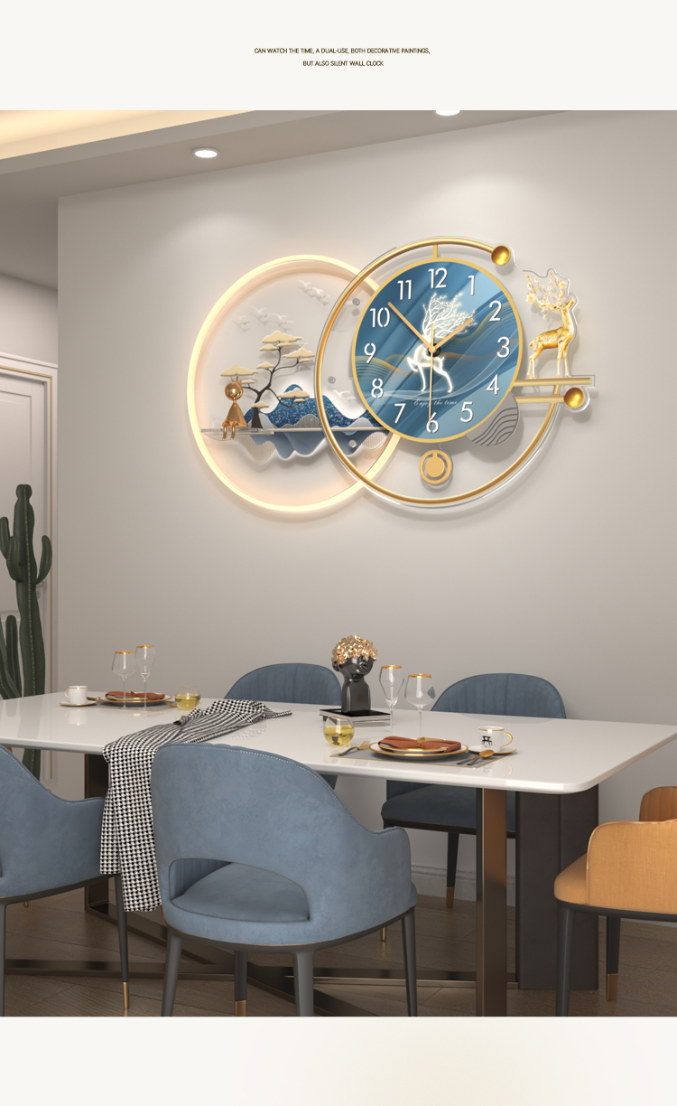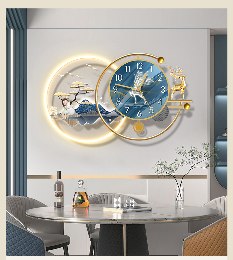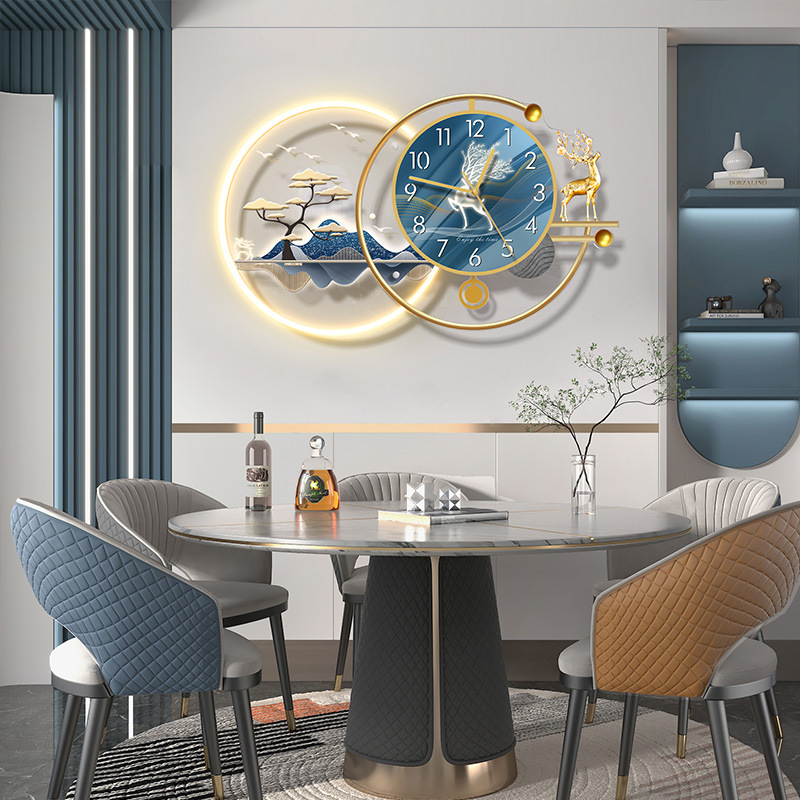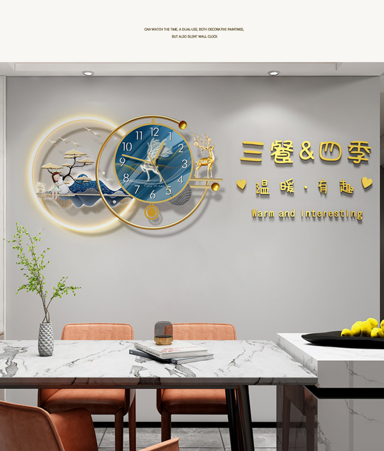 Đồng hồ treo tường sáng tạo phòng khách 2023 nhà mới đồng hồ thời trang đơn giản hiện đại khí quyển đồng hồ bàn ăn treo đồng hồ tắt tiếng