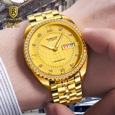 Đồng hồ vàng chính hãng RONGISS Douyin Kuaishou đại lý bán buôn đồng hồ cơ tự động chống nước vàng đồng hồ nam