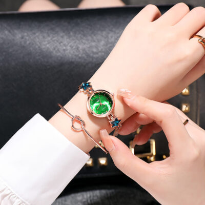 Đồng Hồ Vòng Tay Nữ Xu Hướng Thời Trang Phiên Bản Hàn Quốc Bạn Gái Sinh Viên Màu Xanh Ngôi Sao May Mắn Lưới Màu Đỏ Đồng Hồ Gió Lạnh Nhỏ Tươi