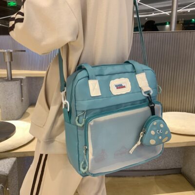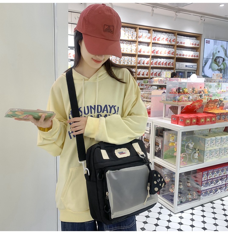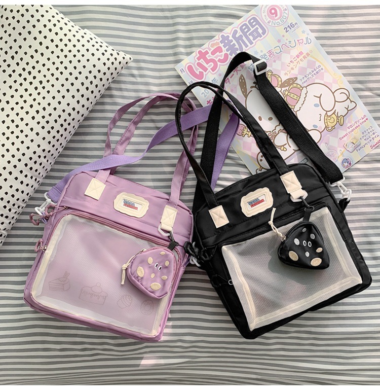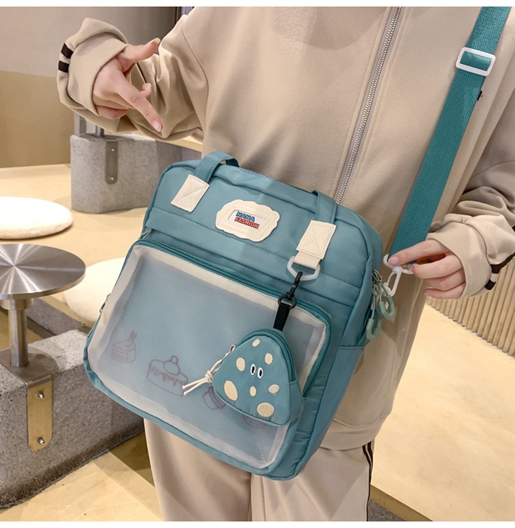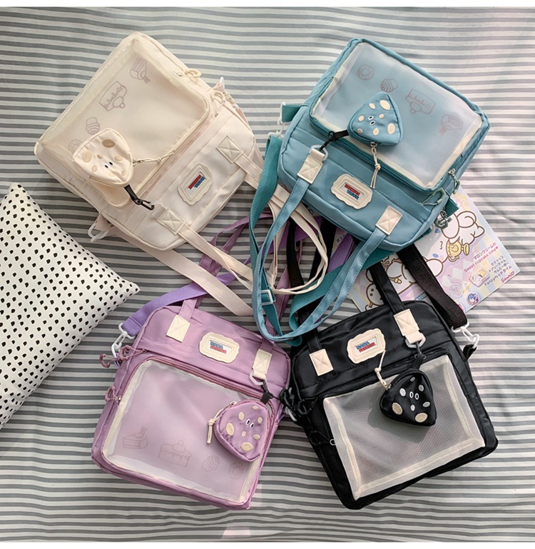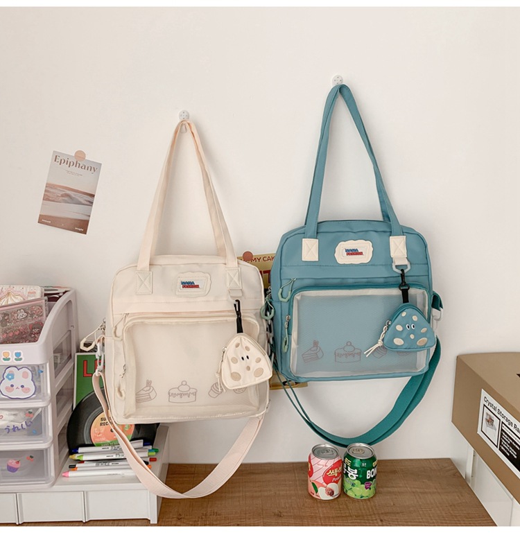 Đồng màu túi đeo vai nữ Nhật Bản cô gái dễ thương học sinh dân tộc thiểu số túi khắc phục hậu quả túi lưới giản dị túi cô gái mềm mại trong rừng