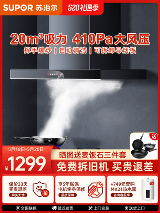 Dòng máy hút mùi Supor MT33 nhà bếp gia đình lớn hút đầu hút dầu máy hút dầu tự động làm sạch dầu máy hôn nhân nhà gỗ