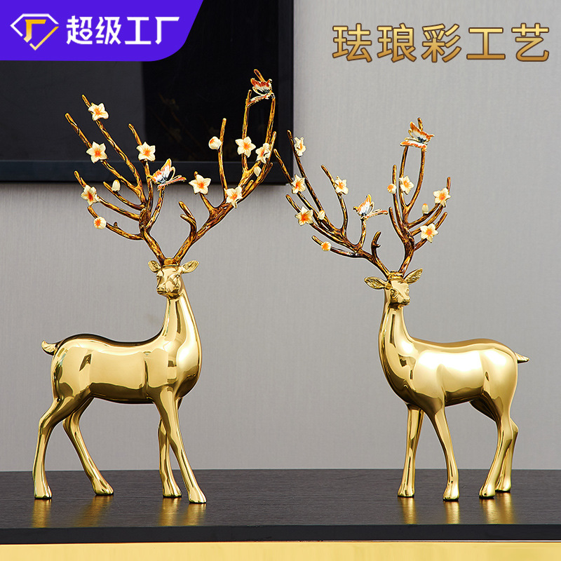 Đồng nguyên chất cao cấp sika hươu trang trí tủ rượu phòng khách hiên nhà trang trí thủ công tân gia nhà mới khai trương quà tặng