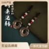 Đồng nguyên chất ngũ hoàng tiền cửa mặt dây chuyền gỗ đào bầu đồng bầu Trung Quốc thắt nút tua hộ gia đình đồ cổ ngũ hoàng tiền xu