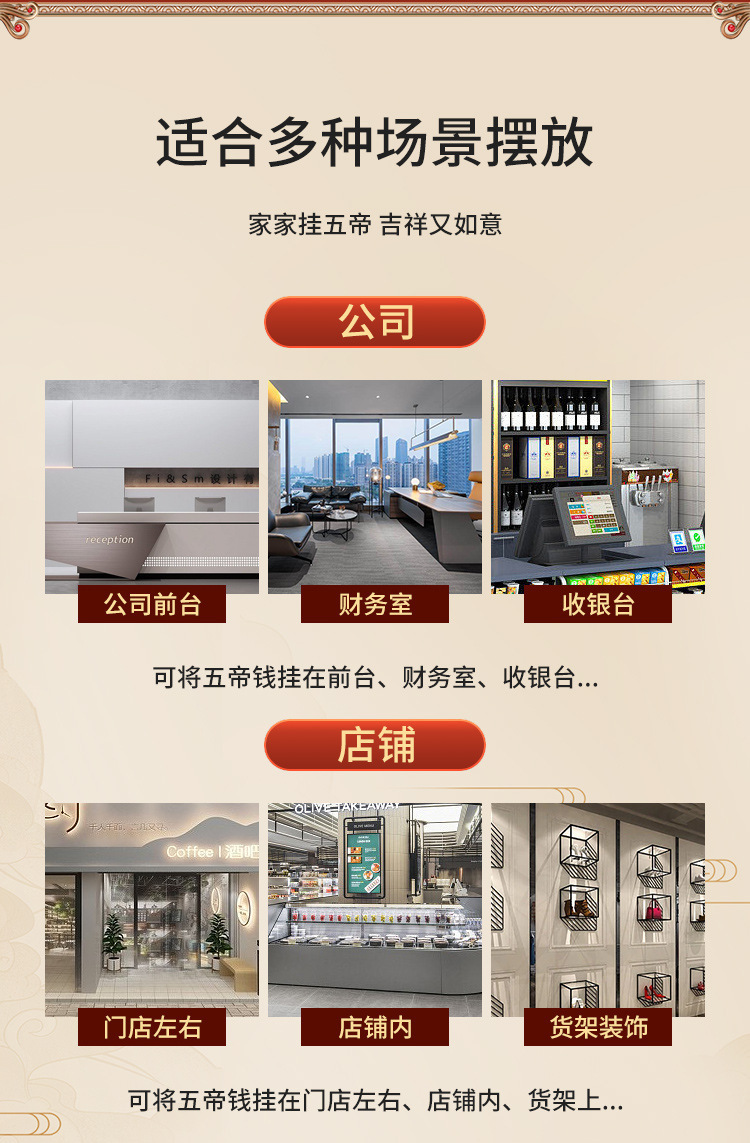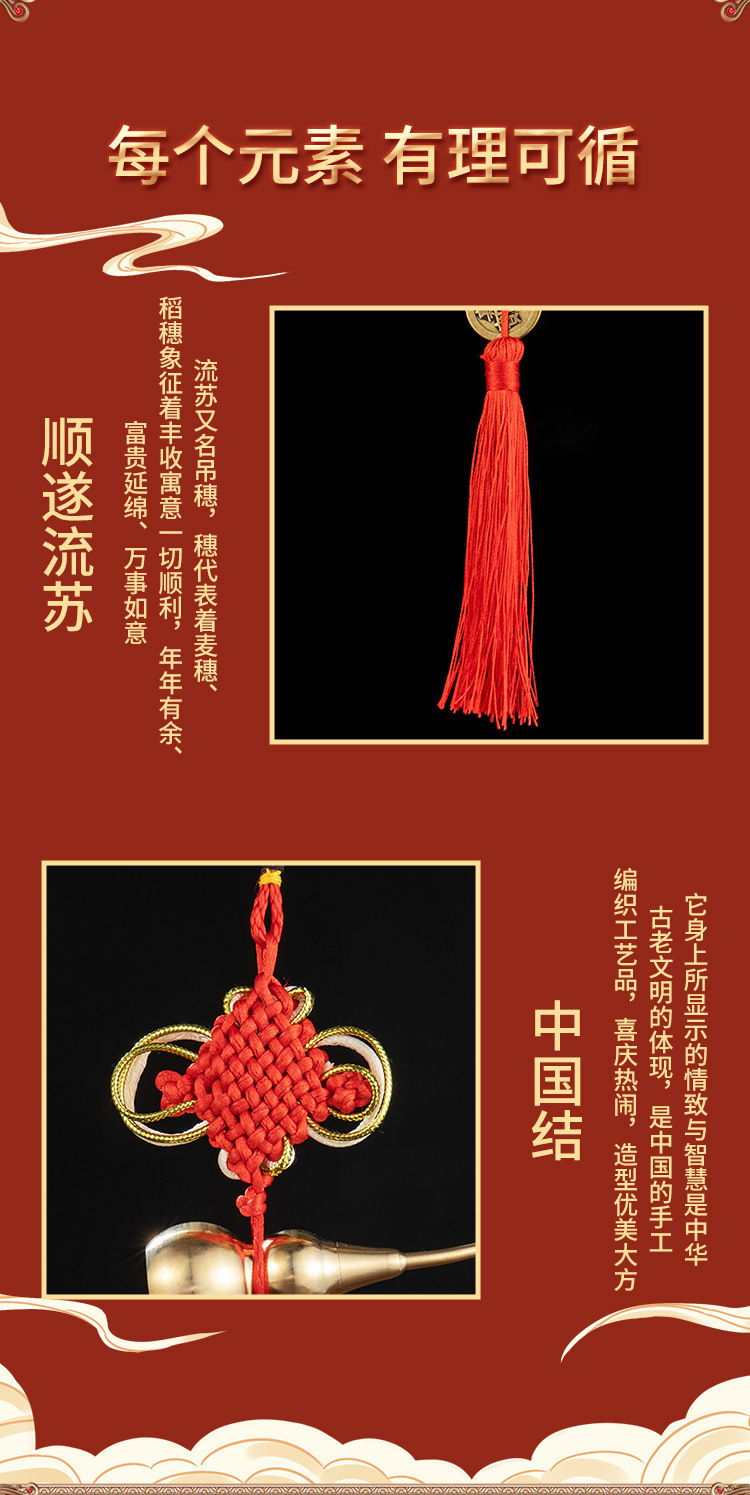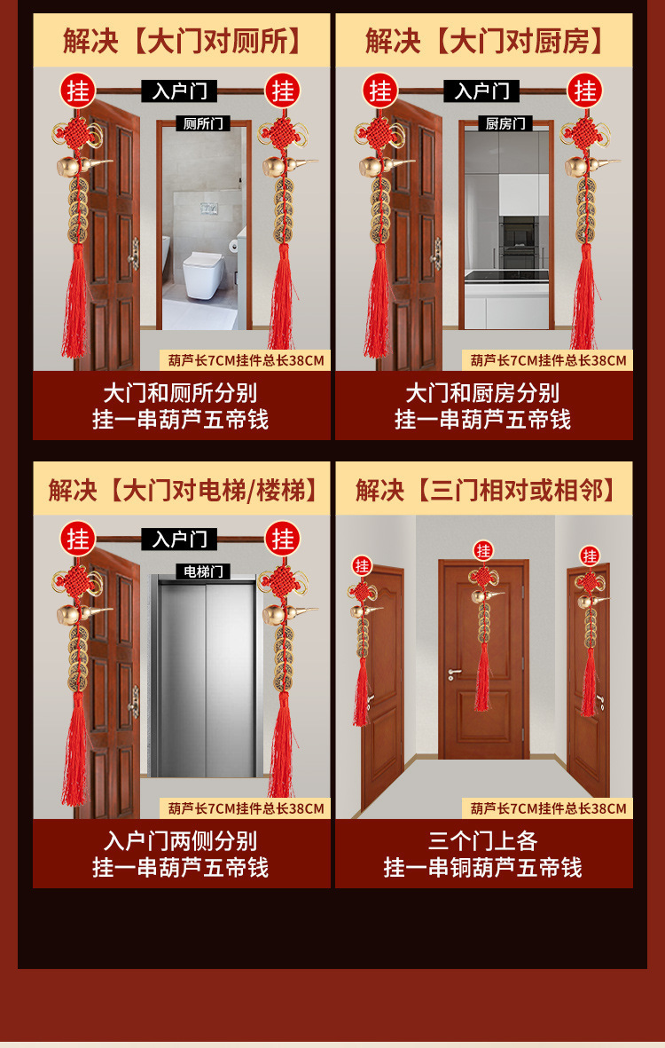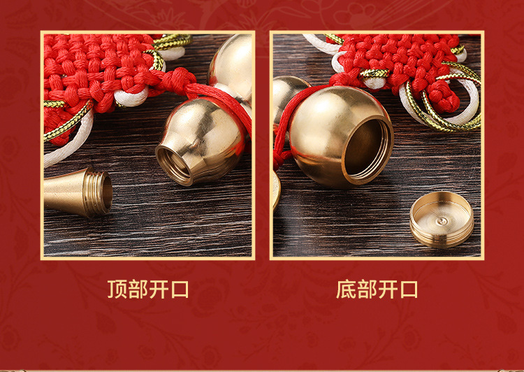 Đồng nguyên chất ngũ hoàng tiền cửa mặt dây chuyền gỗ đào bầu đồng bầu Trung Quốc thắt nút tua hộ gia đình đồ cổ ngũ hoàng tiền xu