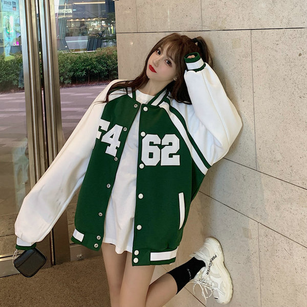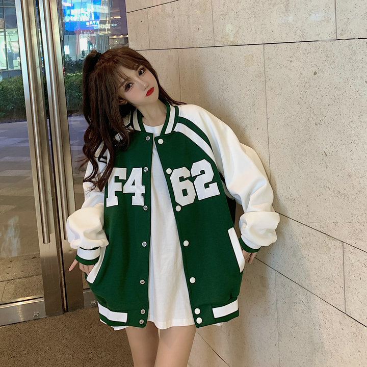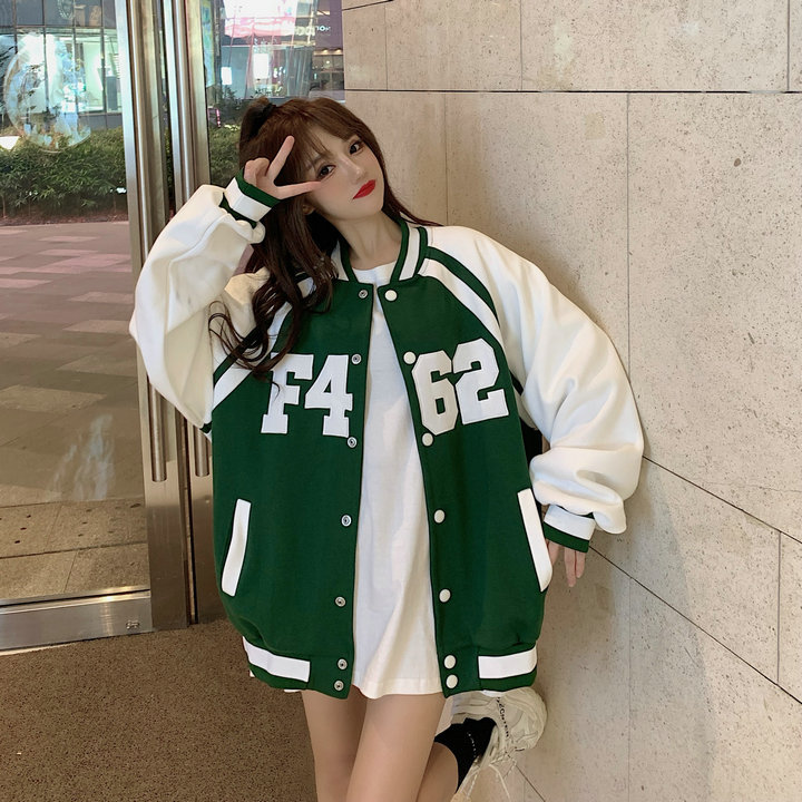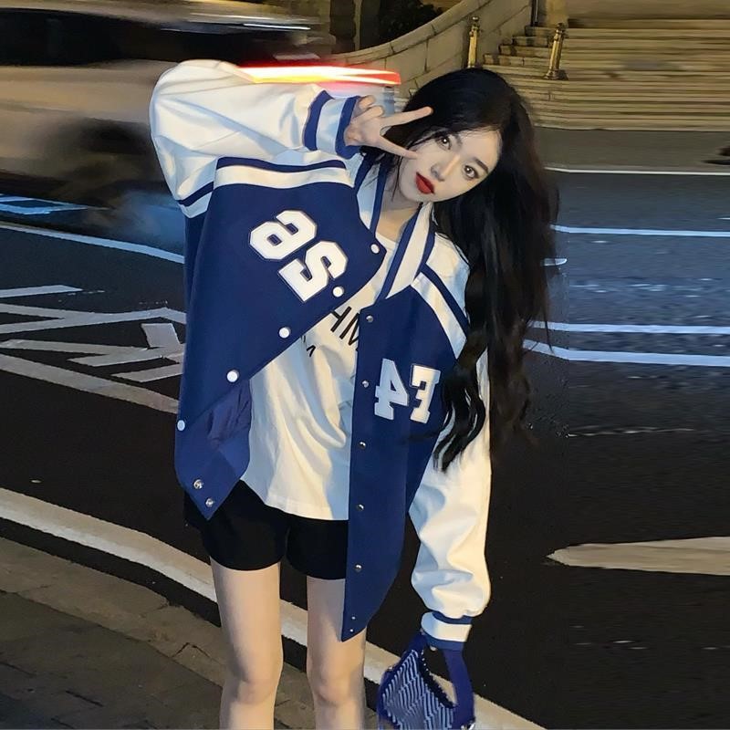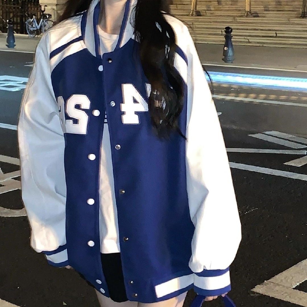 Đồng phục bóng chày Klein màu xanh của Mỹ nữ mùa thu và mùa đông giữa chiều dài retro bf rời thường trên áo khoác áo khoác nữ triều