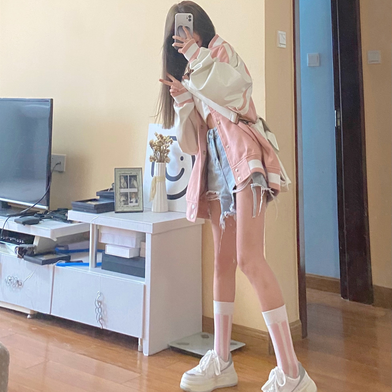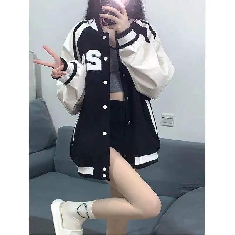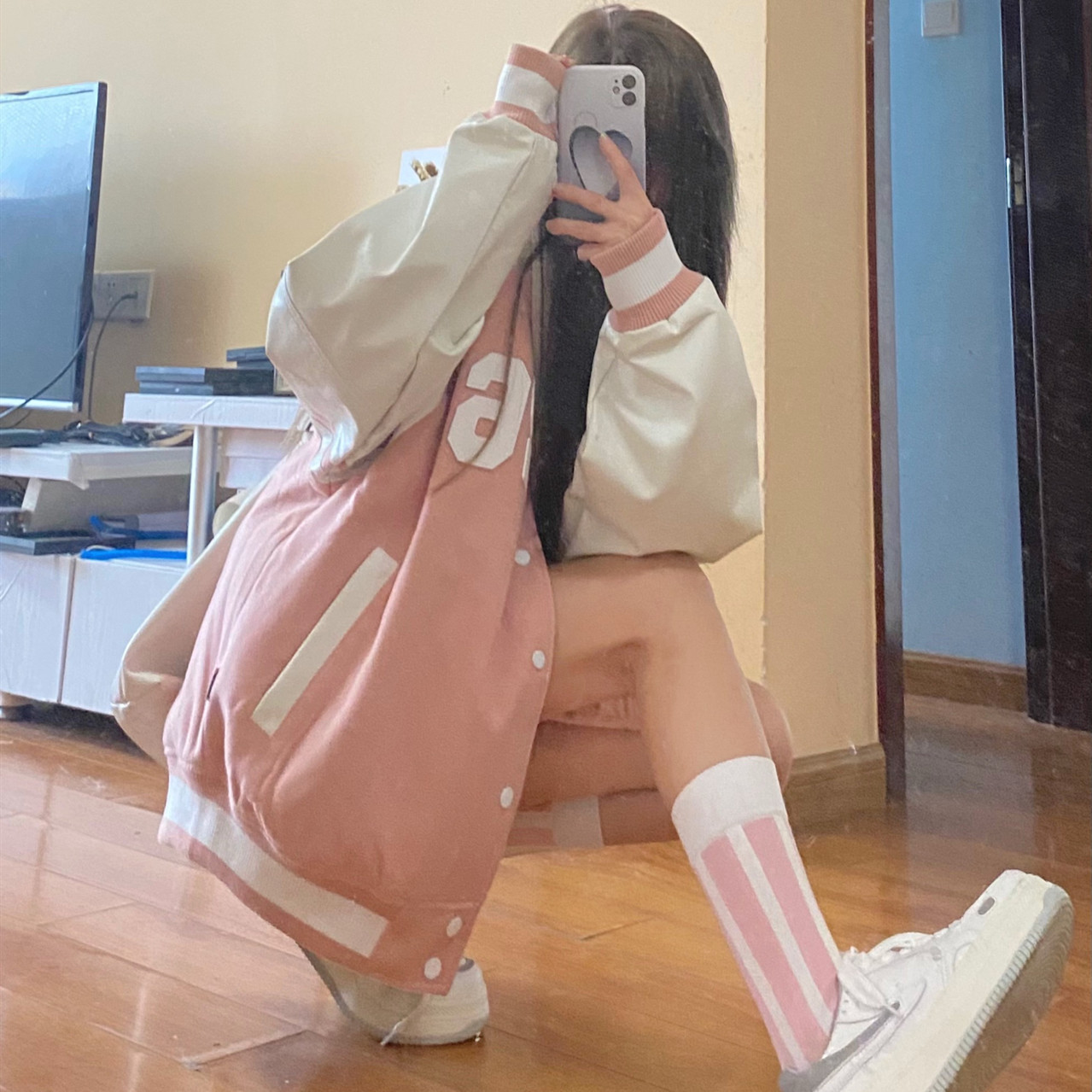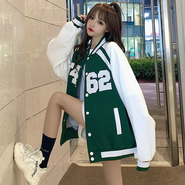 Đồng phục bóng chày Klein màu xanh của Mỹ nữ mùa thu và mùa đông giữa chiều dài retro bf rời thường trên áo khoác áo khoác nữ triều