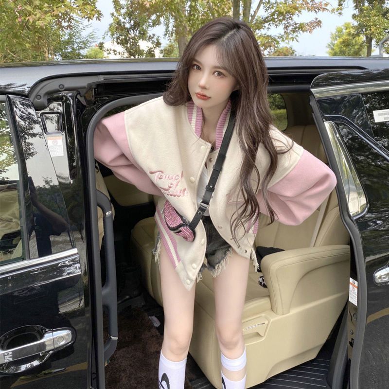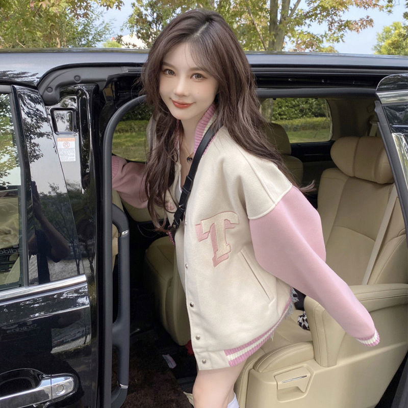 Đồng phục bóng chày len nữ áo khoác ngắn Mỹ mùa xuân và mùa thu mới phong cách Hàn Quốc áo khoác sinh viên phù hợp với áo