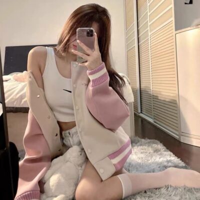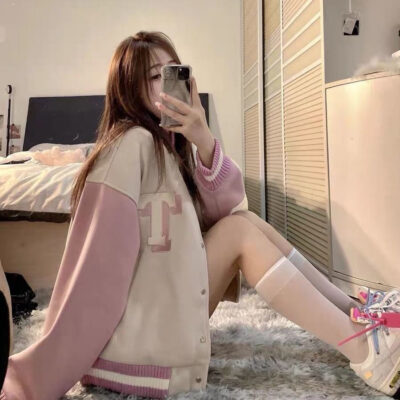 Đồng phục bóng chày len nữ áo khoác ngắn Mỹ mùa xuân và mùa thu mới phong cách Hàn Quốc áo khoác sinh viên phù hợp với áo