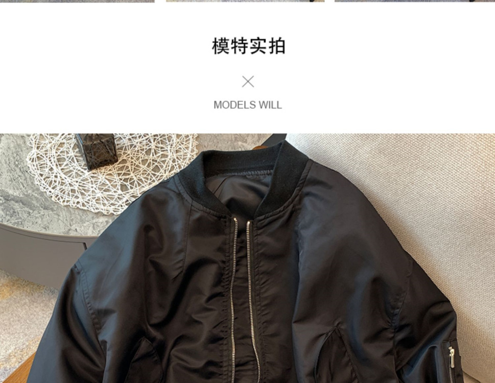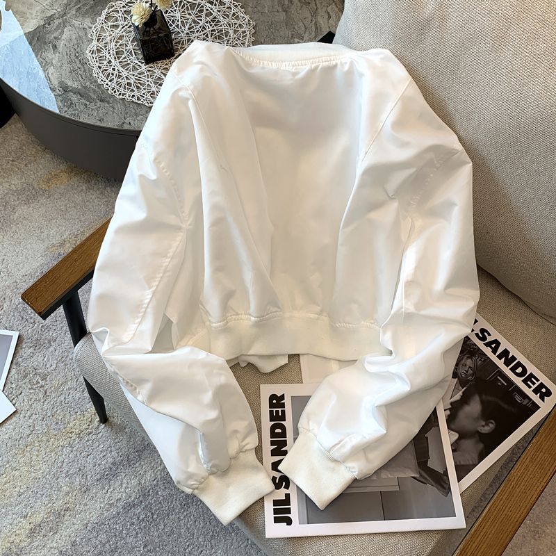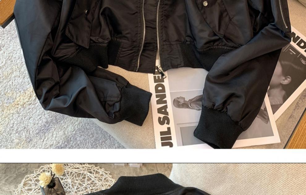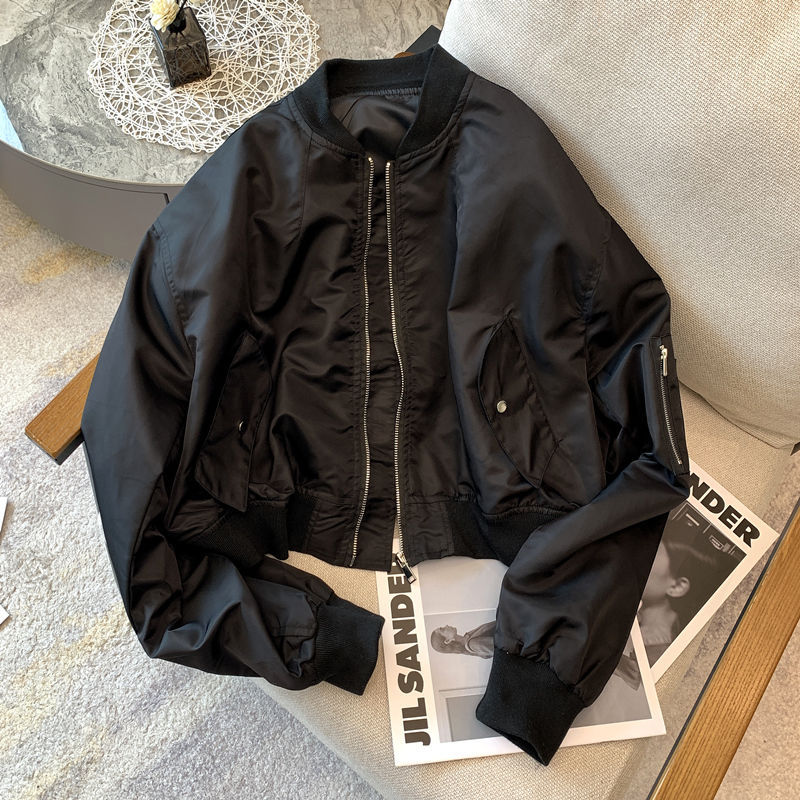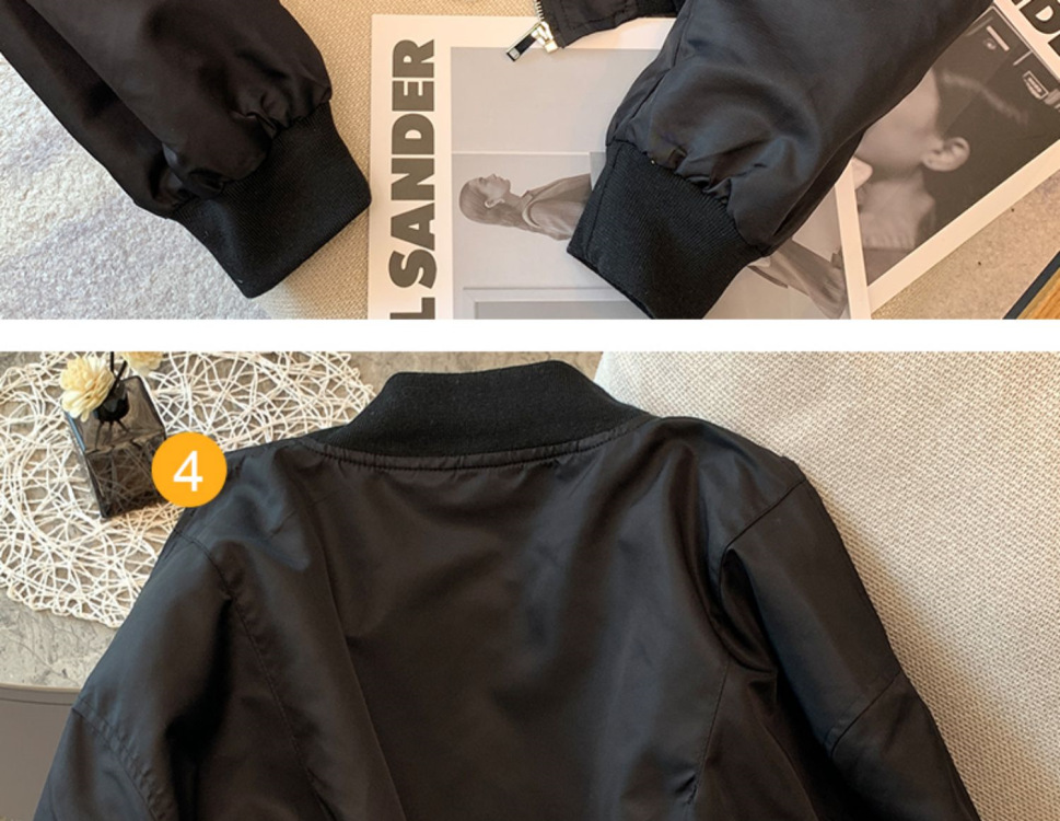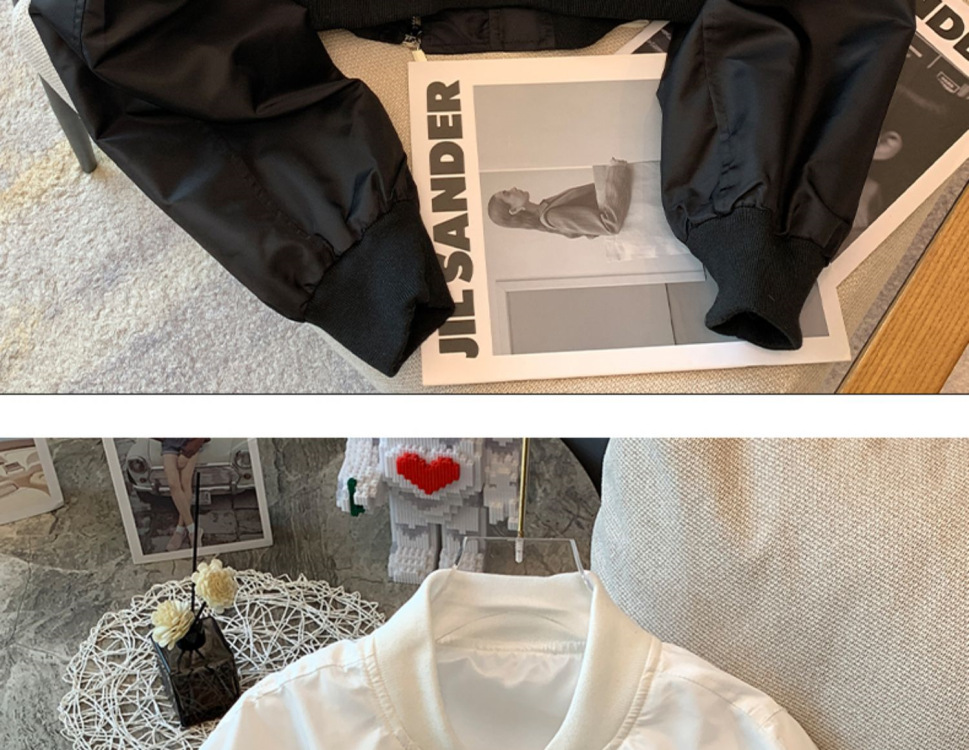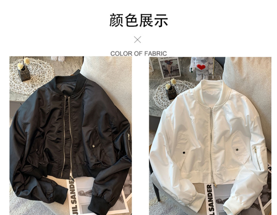 Đồng phục bóng chày Mỹ của phụ nữ màu trắng giản dị mùa xuân và mùa thu mùa hè áo khoác mỏng màu đen dây kéo hàng đầu giảm béo áo khoác ngắn