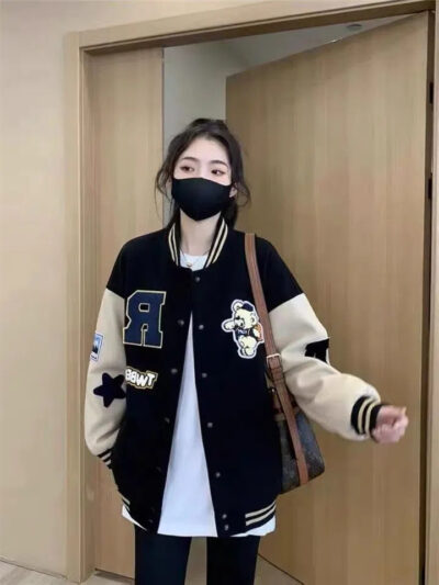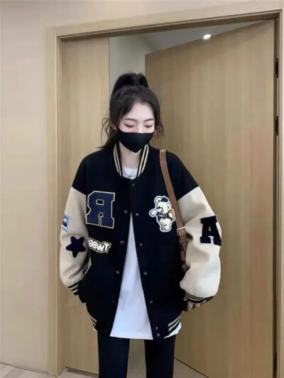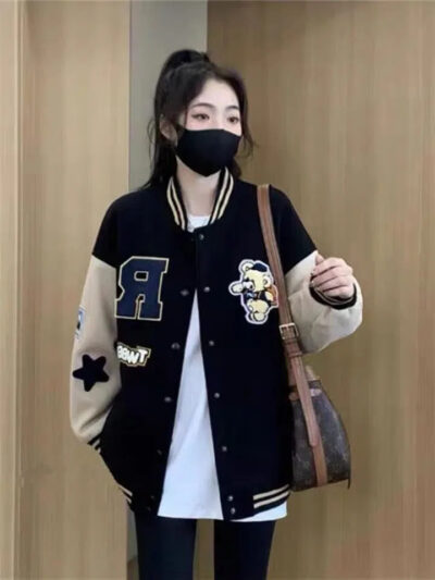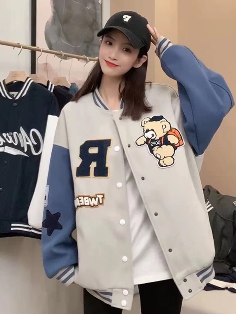 Đồng phục bóng chày Mỹ của phụ nữ mùa thu và mùa đông thiết kế cảm giác thích hợp đường phố cao lỏng lẻo giản dị đại học phong cách phổ biến áo khoác áo khoác cardigan