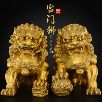 Đồng Sư Tử Vật Trang Trí Bằng Đồng Cặp Cổng Cung Điện Bắc Kinh Sư Tử Lớn Sư Tử Cửa Phòng Khách Trang Trí Thủ Công