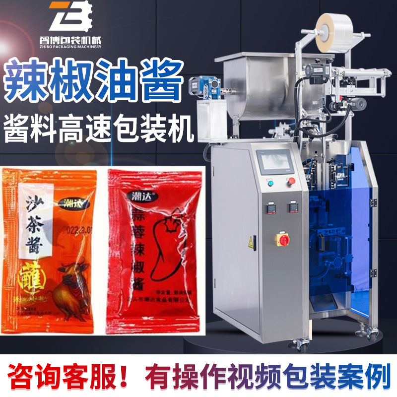 đóng thùng ba mặt máy đóng gói nước sốt định lượng ăn được máy đóng gói dầu ớt máy đóng gói chất lỏng dọc