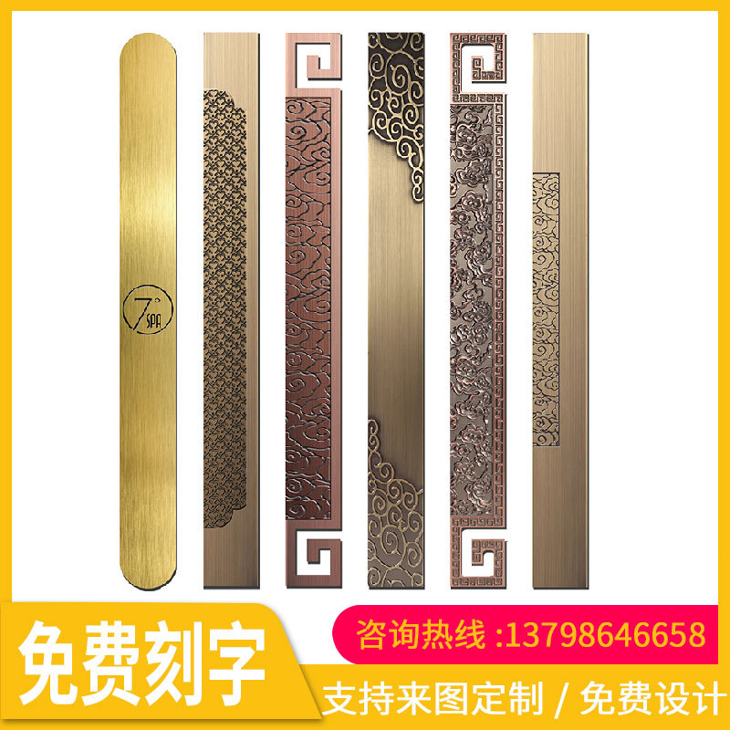 Đồng và nhôm chạm khắc tay cầm dài cửa biệt thự khách sạn tay cầm sang trọng chạm nổi sân mới của Trung Quốc có thể in logo bằng đồng